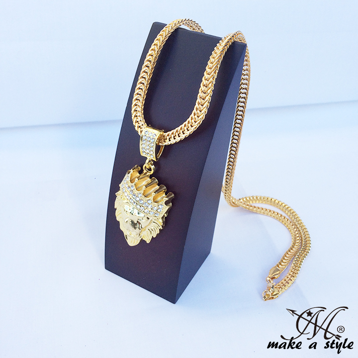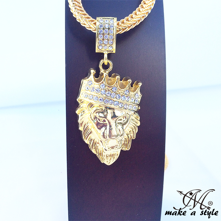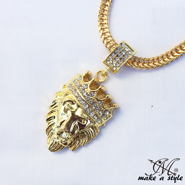 ライオン&王冠の黄金コンビのヒップホップネックレスです。