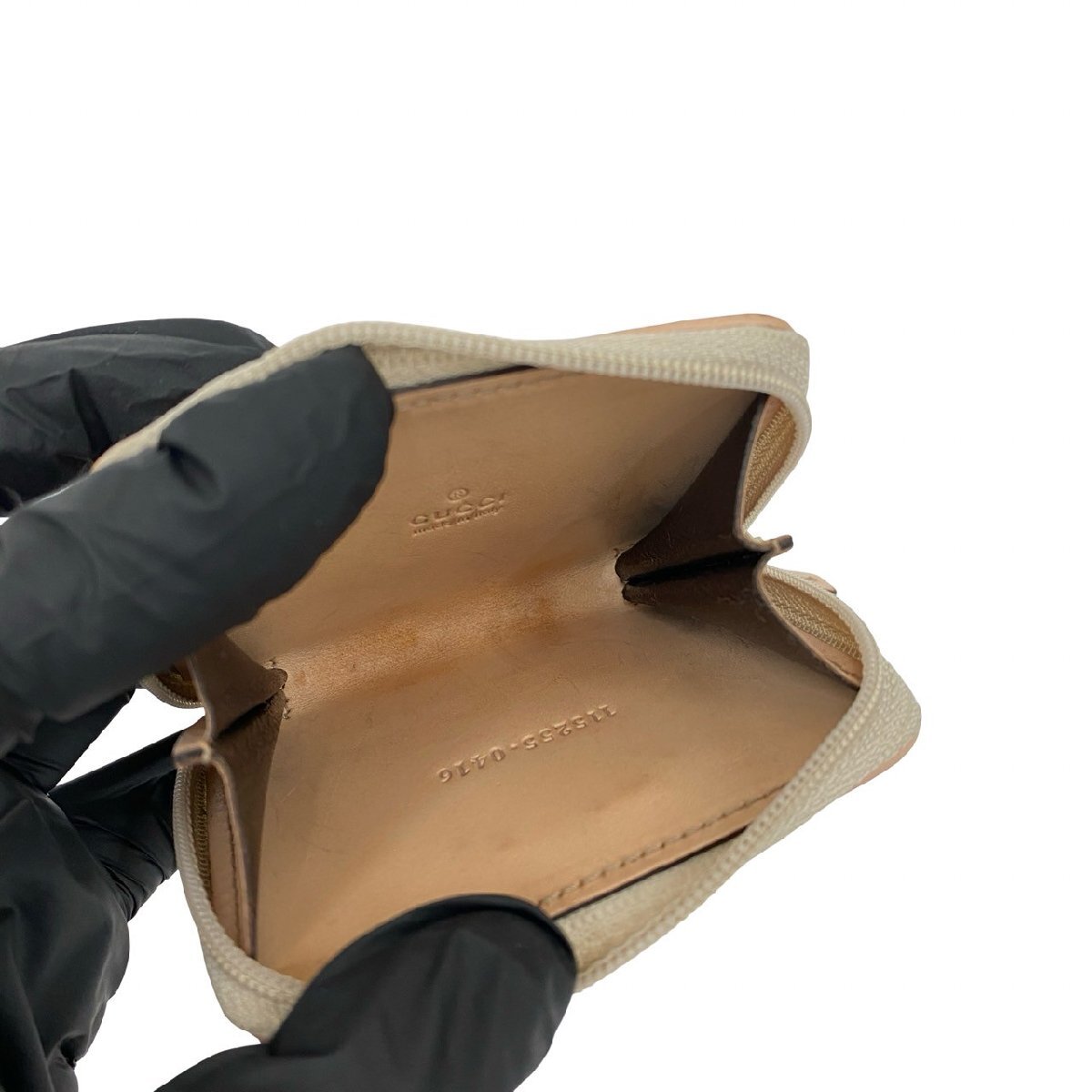 極 美品 希少品 GUCCI グッチ GG 柄 ロゴ 金具 キャンバス レザー 本革 ラウンドジップ コインケース 小銭入れ ピンク ベージュ 27090