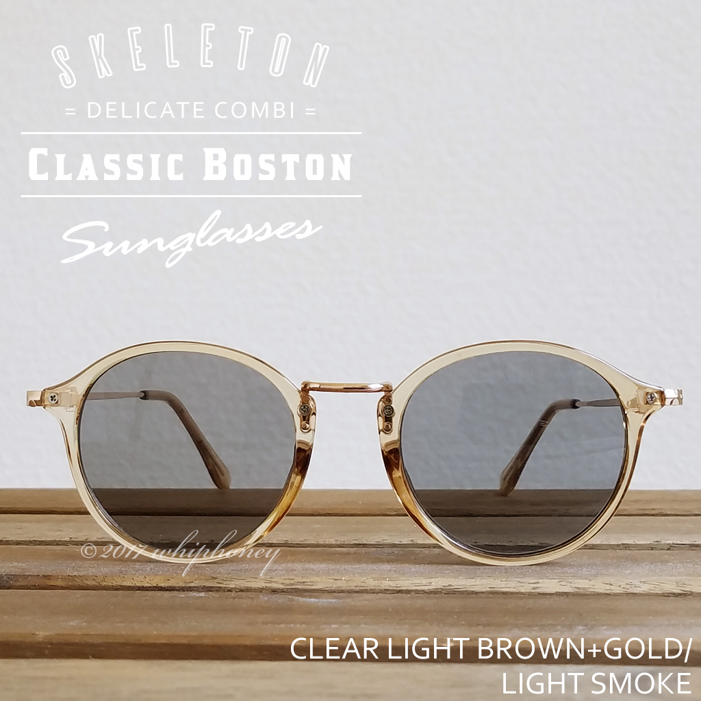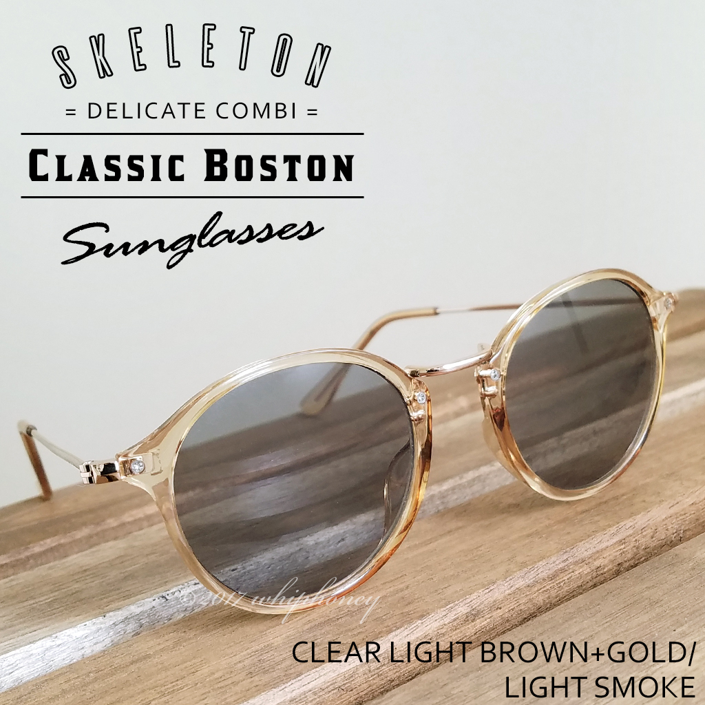 軽快クリアフレーム メタルコンビUVボストン サングラス グレーレンズ ブラウン