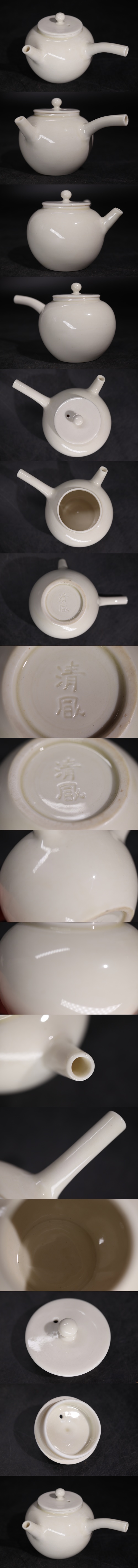 | 清風与平 白磁 横手急須 / 京焼 急須 茶器 煎茶道具 煎茶飾 .G2474 |