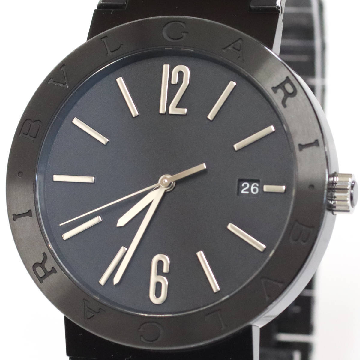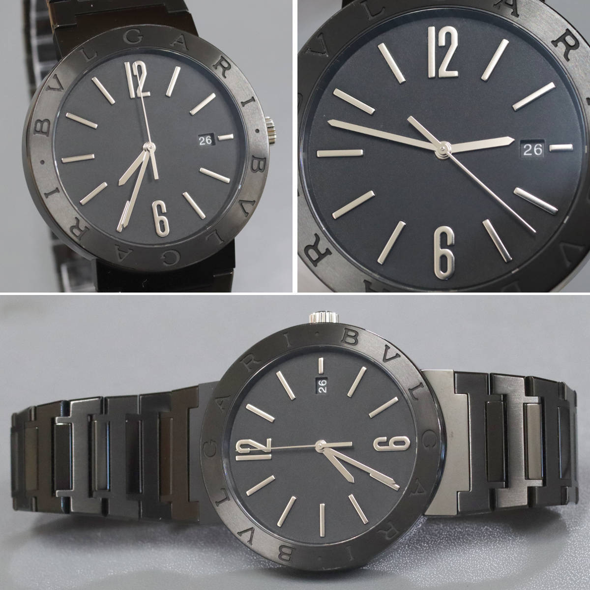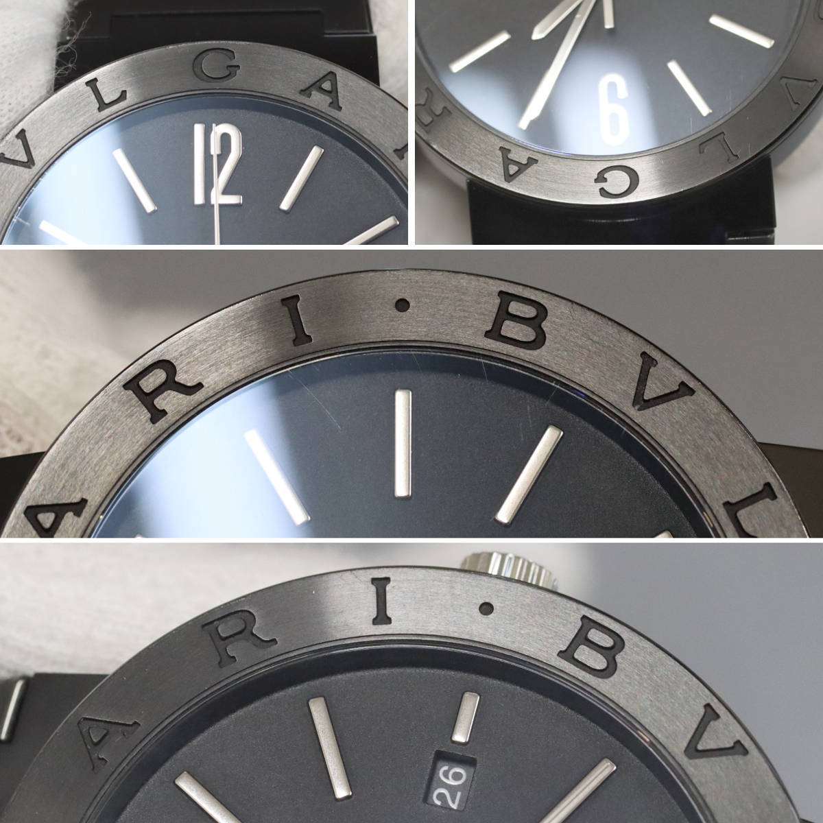| ブルガリのメンズウォッチ、ブルガリ・ブルガリ(BB41S)の中古品です。 風防の無反射コーティングに肉眼でもわずかに見える傷があります。 所々使用に伴う傷があるものの、肉眼では気になりづらいです。 付属品は以下の通りです。 内外箱(傷があります。) 保証書
