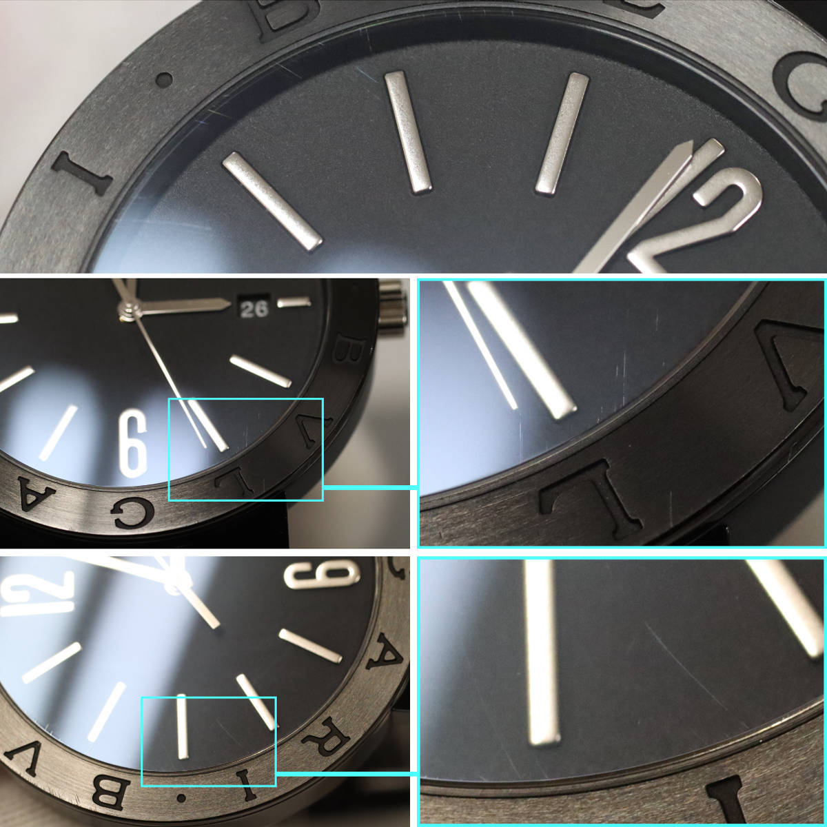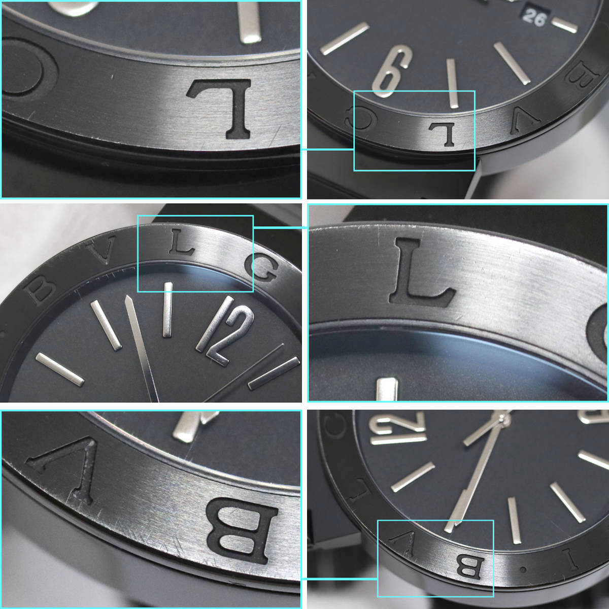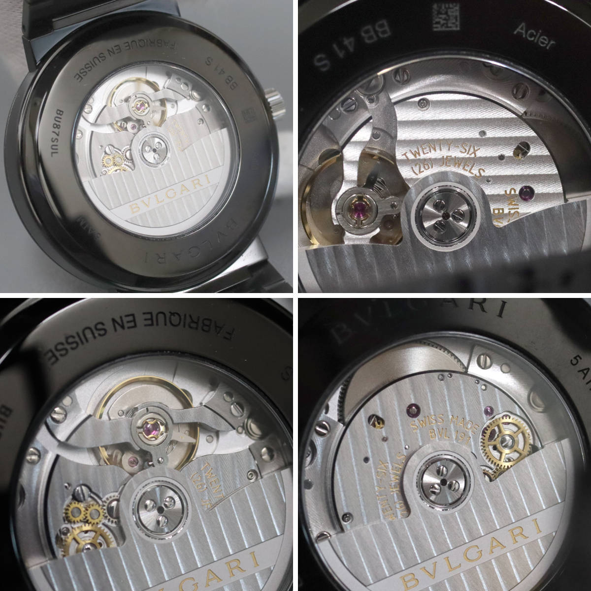 | ブルガリのメンズウォッチ、ブルガリ・ブルガリ(BB41S)の中古品です。 風防の無反射コーティングに肉眼でもわずかに見える傷があります。 所々使用に伴う傷があるものの、肉眼では気になりづらいです。 付属品は以下の通りです。 内外箱(傷があります。) 保証書
