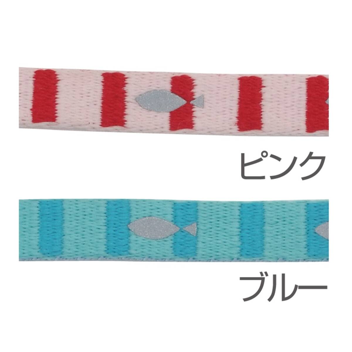 商品紹介 人気の反射素材を使用したボーダーと魚がかわいい猫専用首輪。力が加わると外れるバックル仕様。万一に備えて名前とTELが記入できる迷子札付。 使用上の注意 ●火気や水気のそば・直射日光・高温多湿の場所をさけて保管してください。●幼児・子供・ペットのふれない所に保管してください。 原材料・成分 ポリエステル 使用方法 ~●装着の際は、バックルがカチッと音がなるまでしっかりと留めてください。指が2~~3本入る程度に装着し、しまり過ぎていないか、たえず点検してください。~ ~●猫以外には使用しないでください。●材質によっては猫が引っかくと、縮んで猫の首がしまる恐れがあります。たえず点検し、猫に異常がある場合は直ちに使用を中止してください。●事故防止のため、適応サイズ以外の猫には使用しないでください。また、猫の習性を十分理解したうえで製品を購入してください。●本品は引ひも・鎖にはセットできませんので、散歩及びケイ留には使用しないでください。●本品は指が2~~3本入る程度に装着し、しまり過ぎていないか、たえず点検してください。●猫が嫌がる場合は、無理に使用しないでください。●子供が使用する場合は、必ず大人が立ち会ってください。●本品は消耗品ですので、使用前には必ず点検し、前後を目安としてホツレ・毛羽立ち・亀裂等の傷みが目立ち始めたら新しい製品に買い替えてください。●装着の際は、バックルがカチッと音がなるまでしっかりと留めてください。●製品によっては水ぬれ等で色落ちすることがあります。ぬれた場合はタオル等でふき、陰干ししてください。暖房器具などで乾燥させないでください。●火気や水気のそばでの使用や保管はしないでください。●幼児・子供・ペットのふれない所に保管してください。~