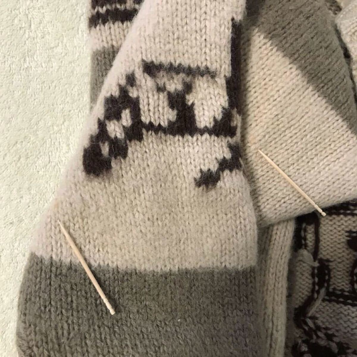 ・右脇、右肘にシミがあります。(画像10、爪楊枝先に)