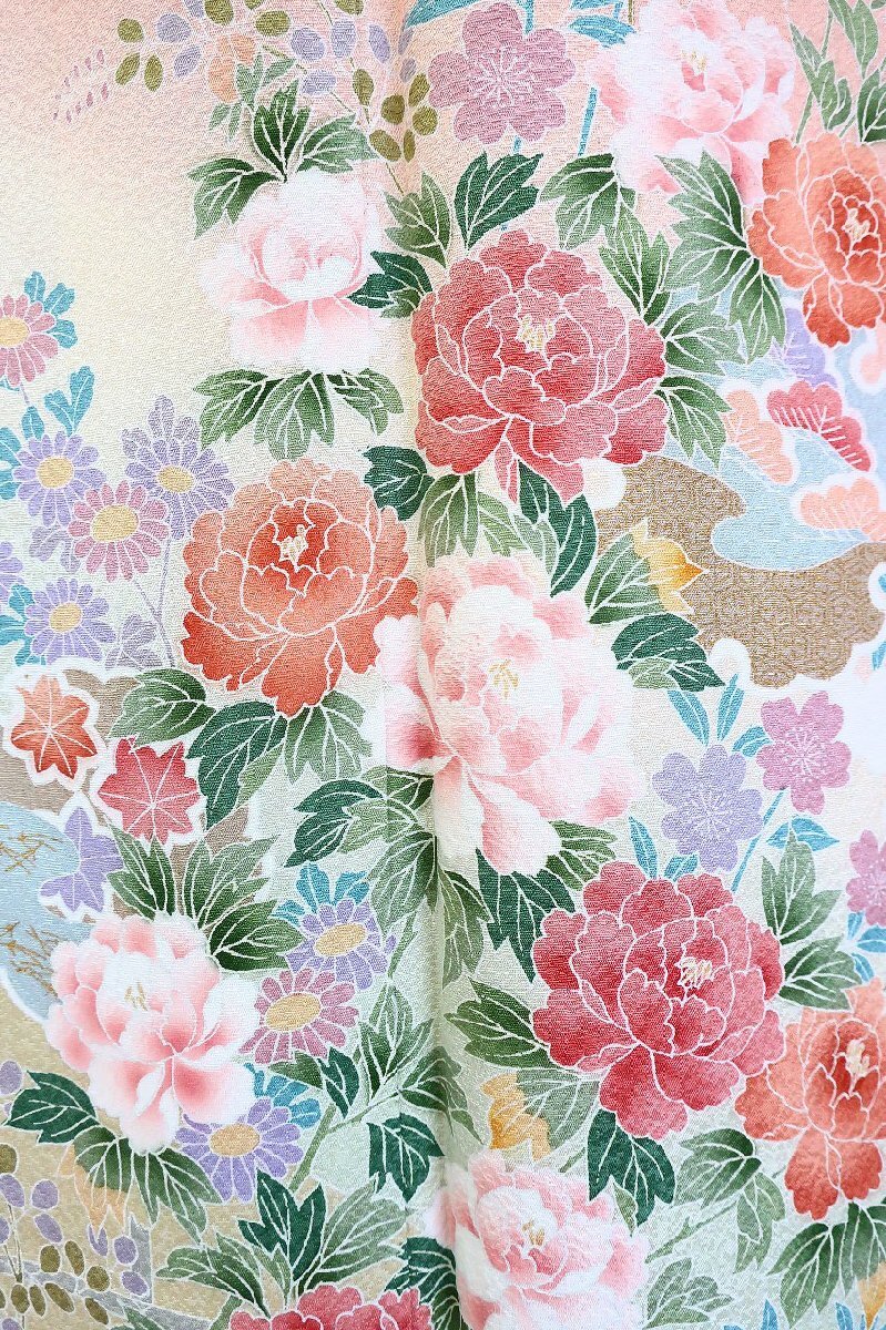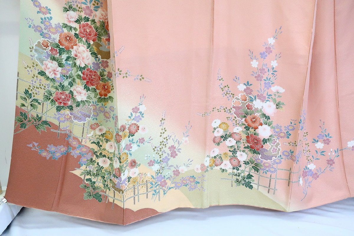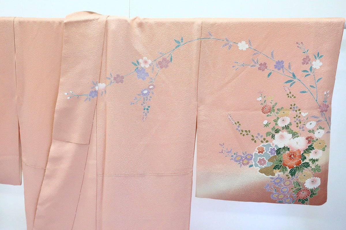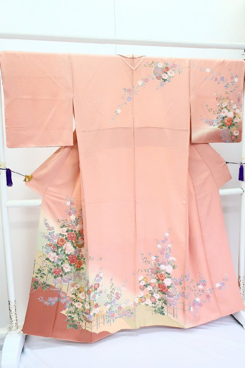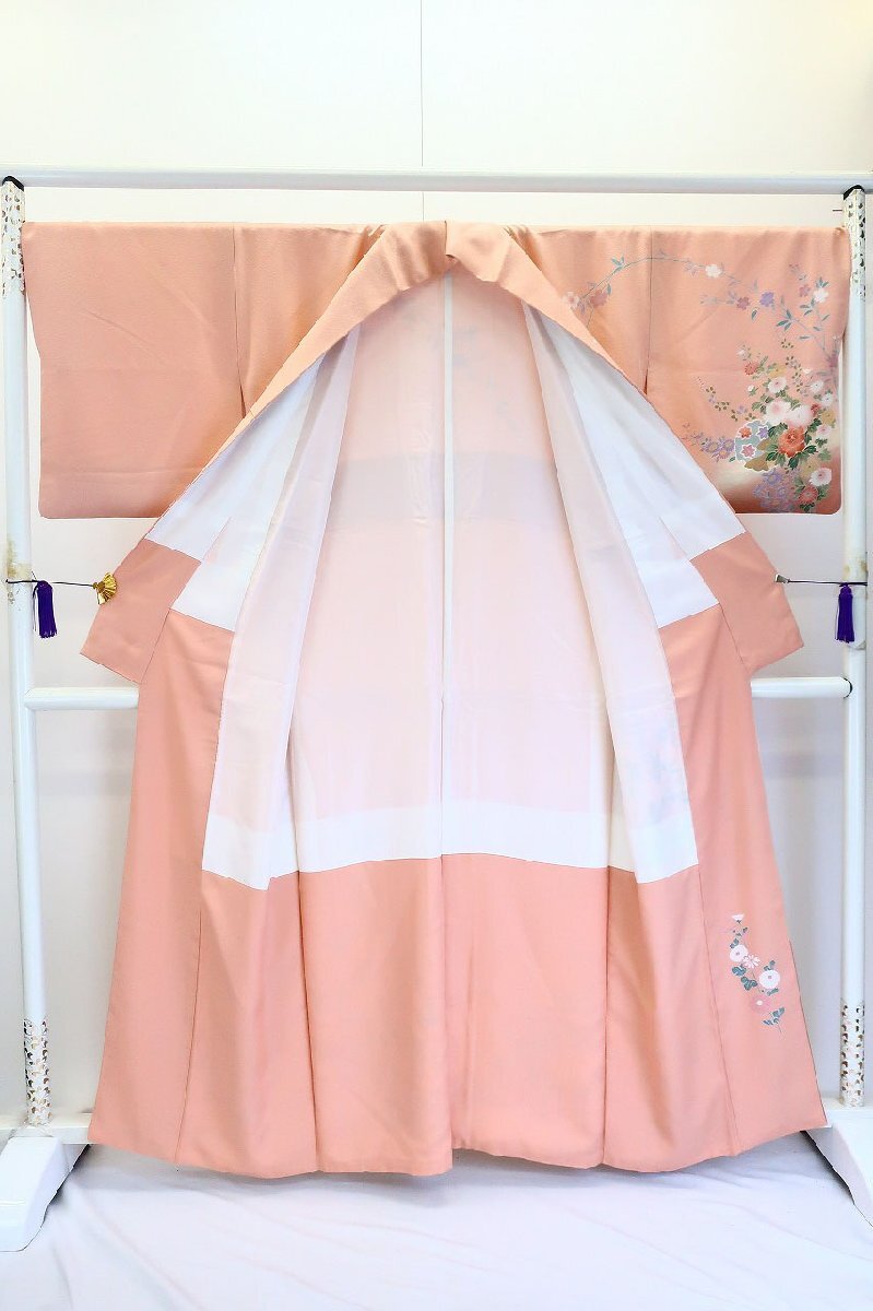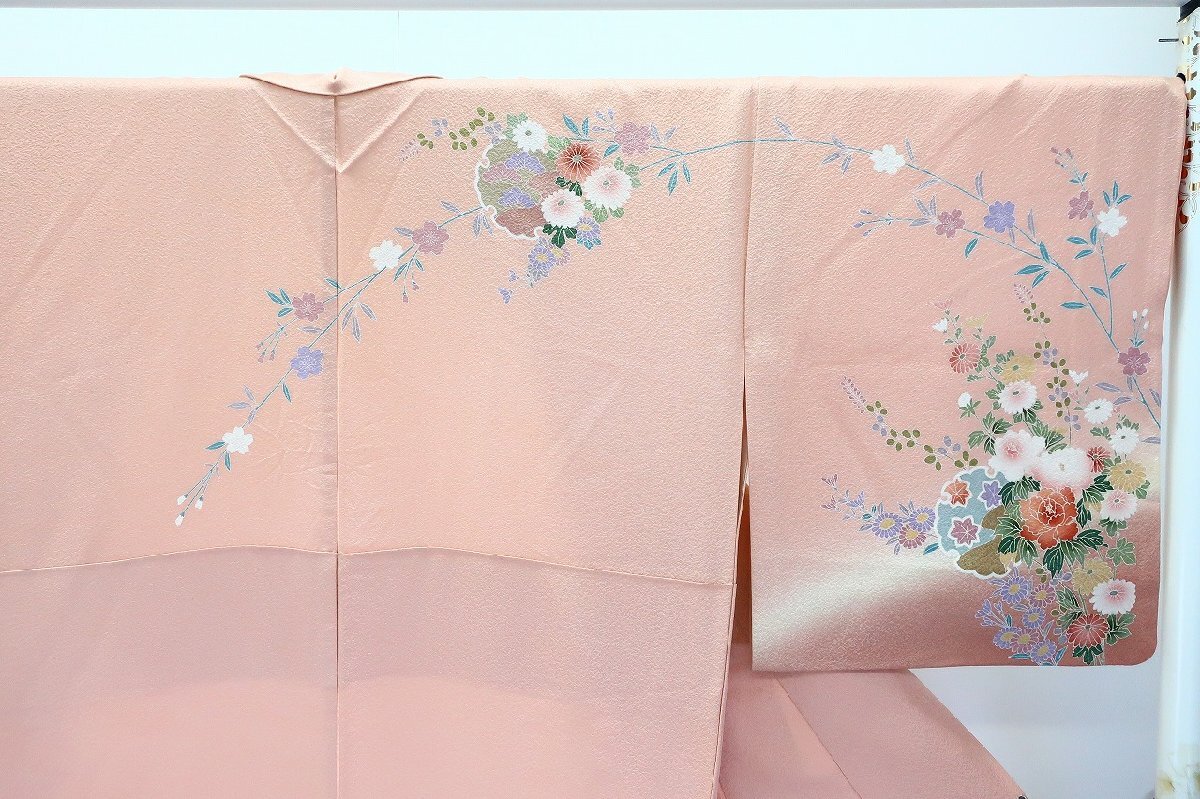 〔着物の色〕 薄桃色 〔八掛の色〕 共色(柄入り) 〔着物の素材〕 正絹 |