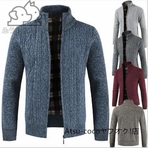 コート ニットアウター 裏起毛 メンズ 厚手 防寒 襟たち ジャケット カーディガン 無地 カジュア