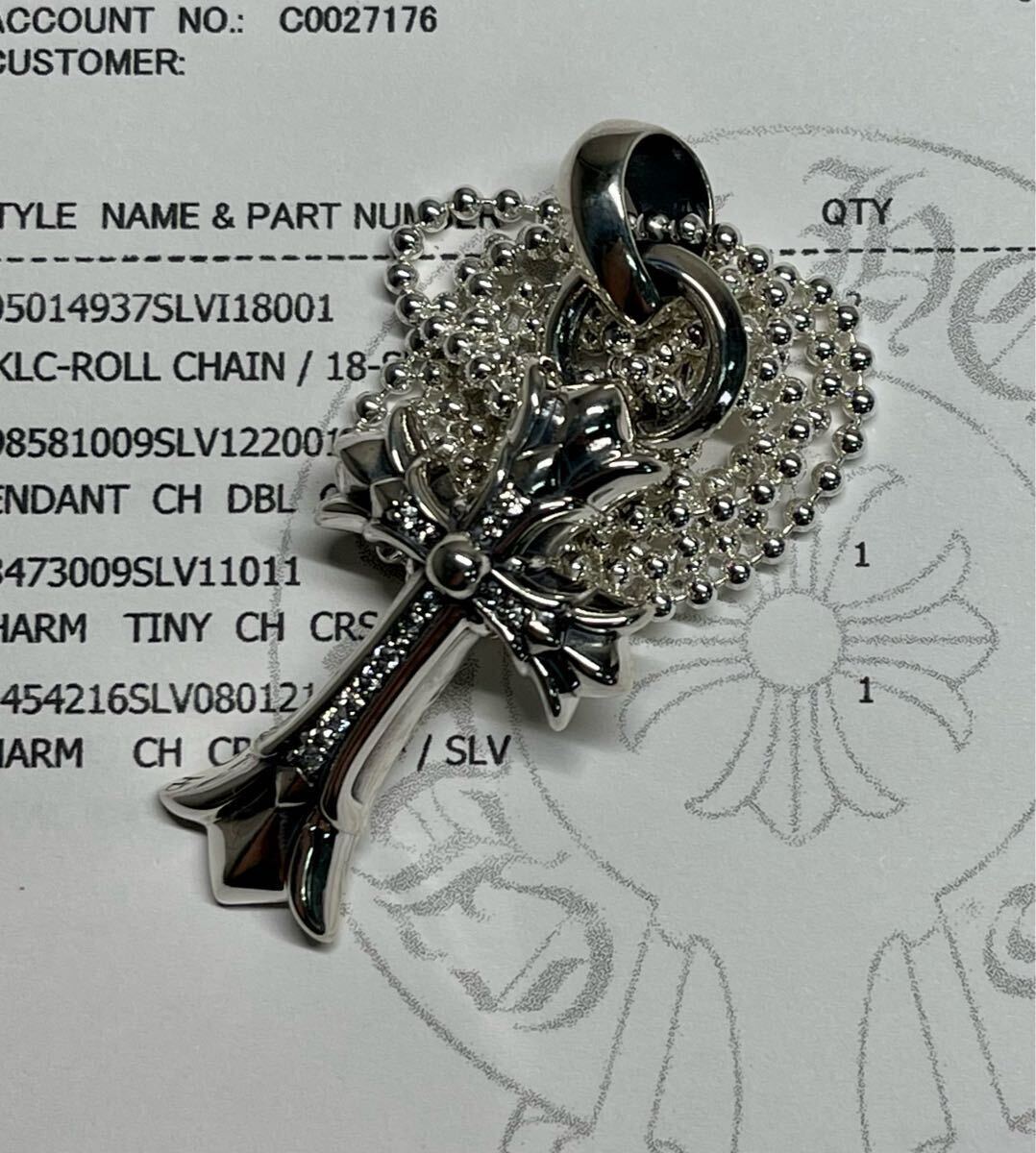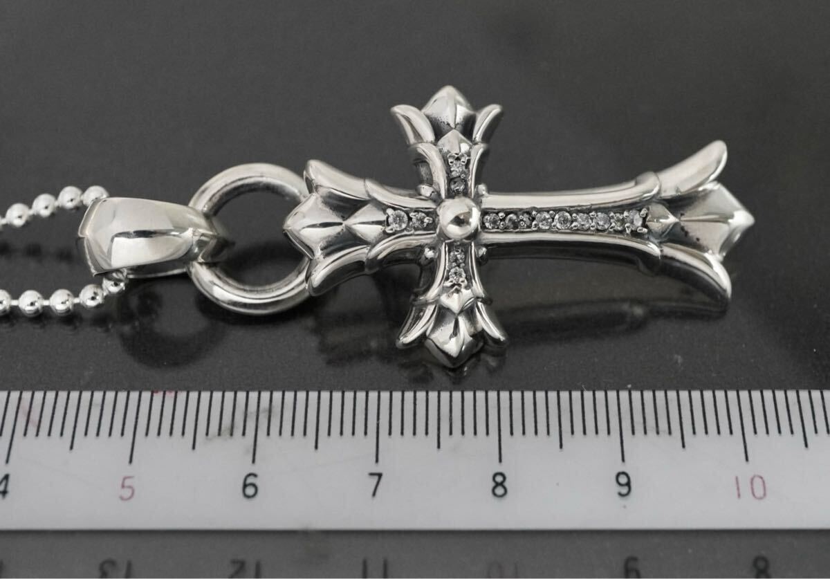 クロムハーツ★CHダブルクロスペンダントwithベイル/カスタムパヴェ/新品加工/ボールチェーン/インボイス/CHROME HEARTS