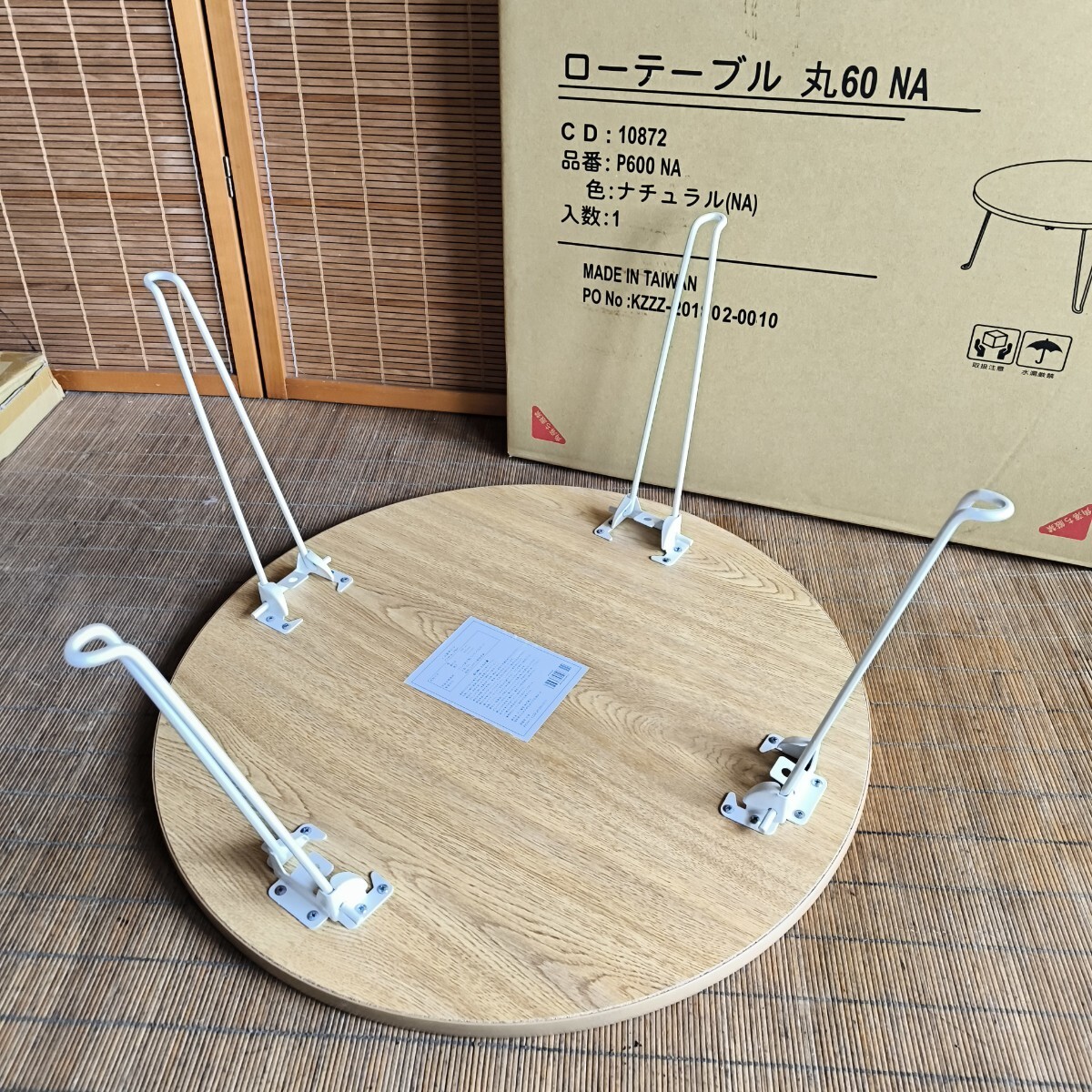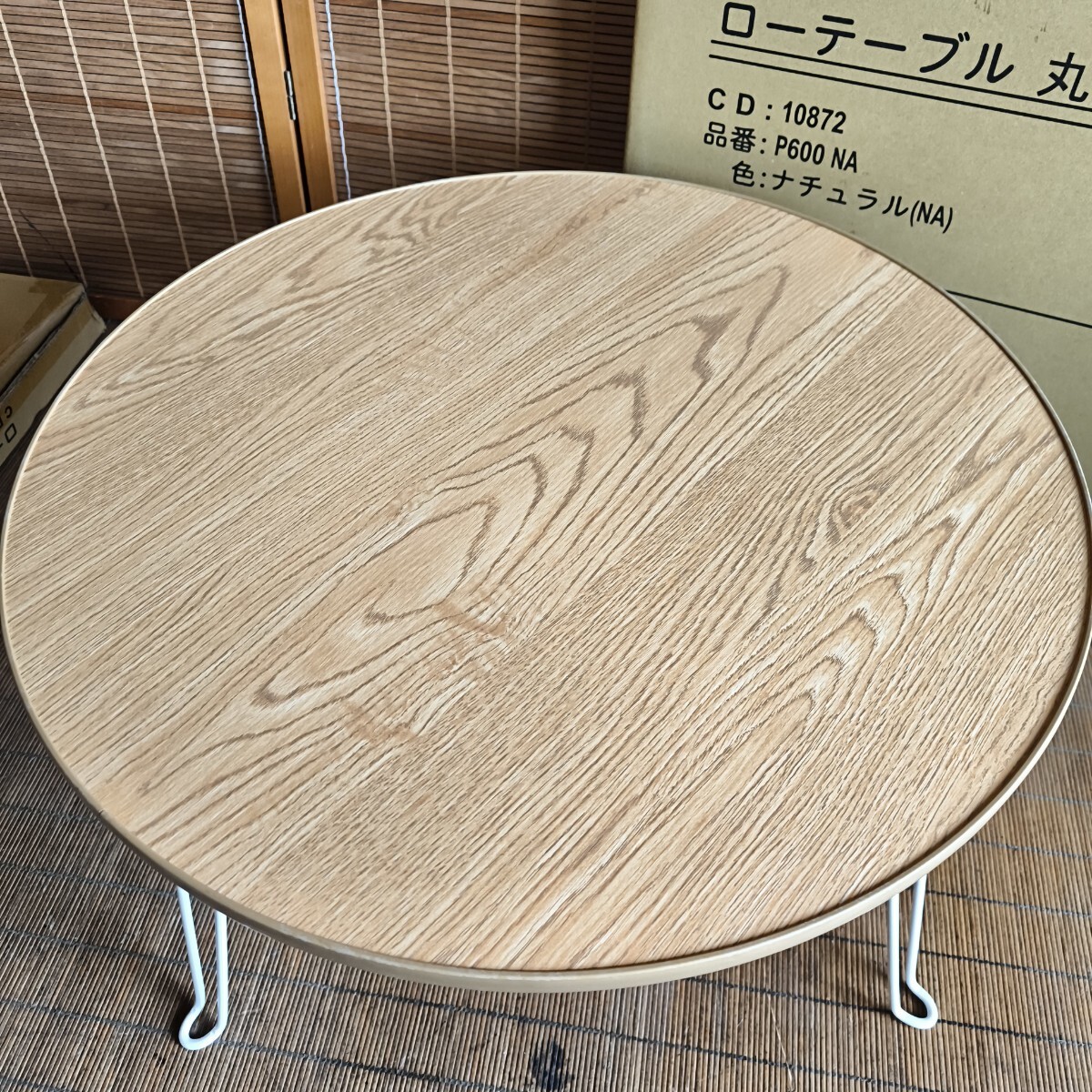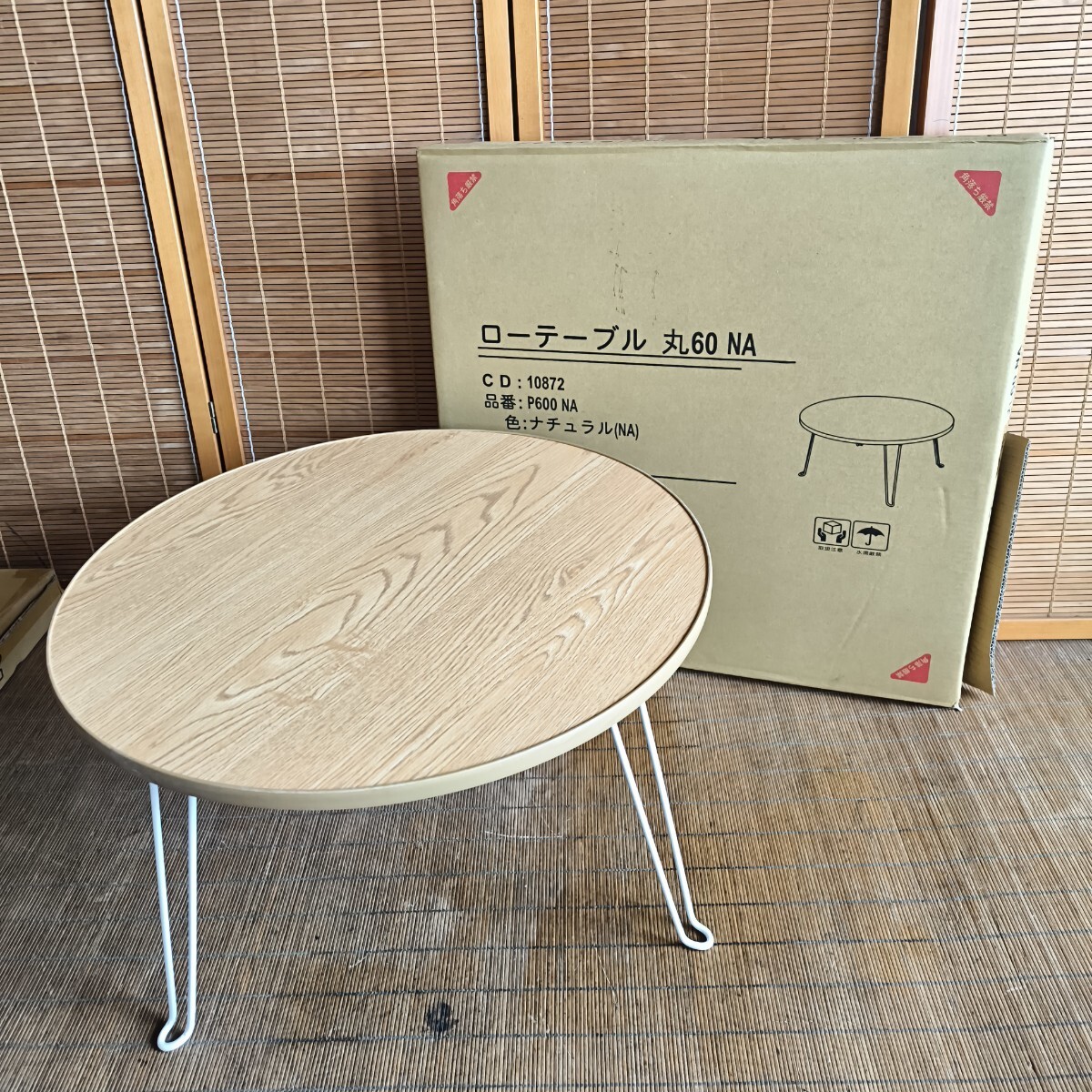 ◎【ローテーブル ②】未使用品 引き上げ品 丸型 丸60 ナチュラル 木目 不二貿易 600×600×高さ315mm 丸テーブル 折りたたみ 268-18