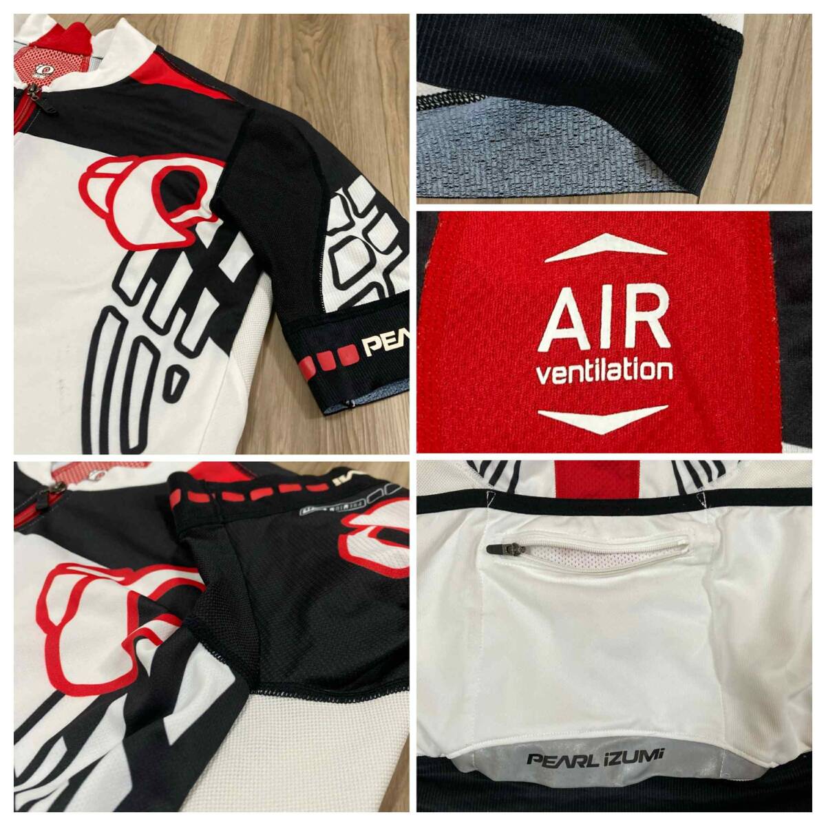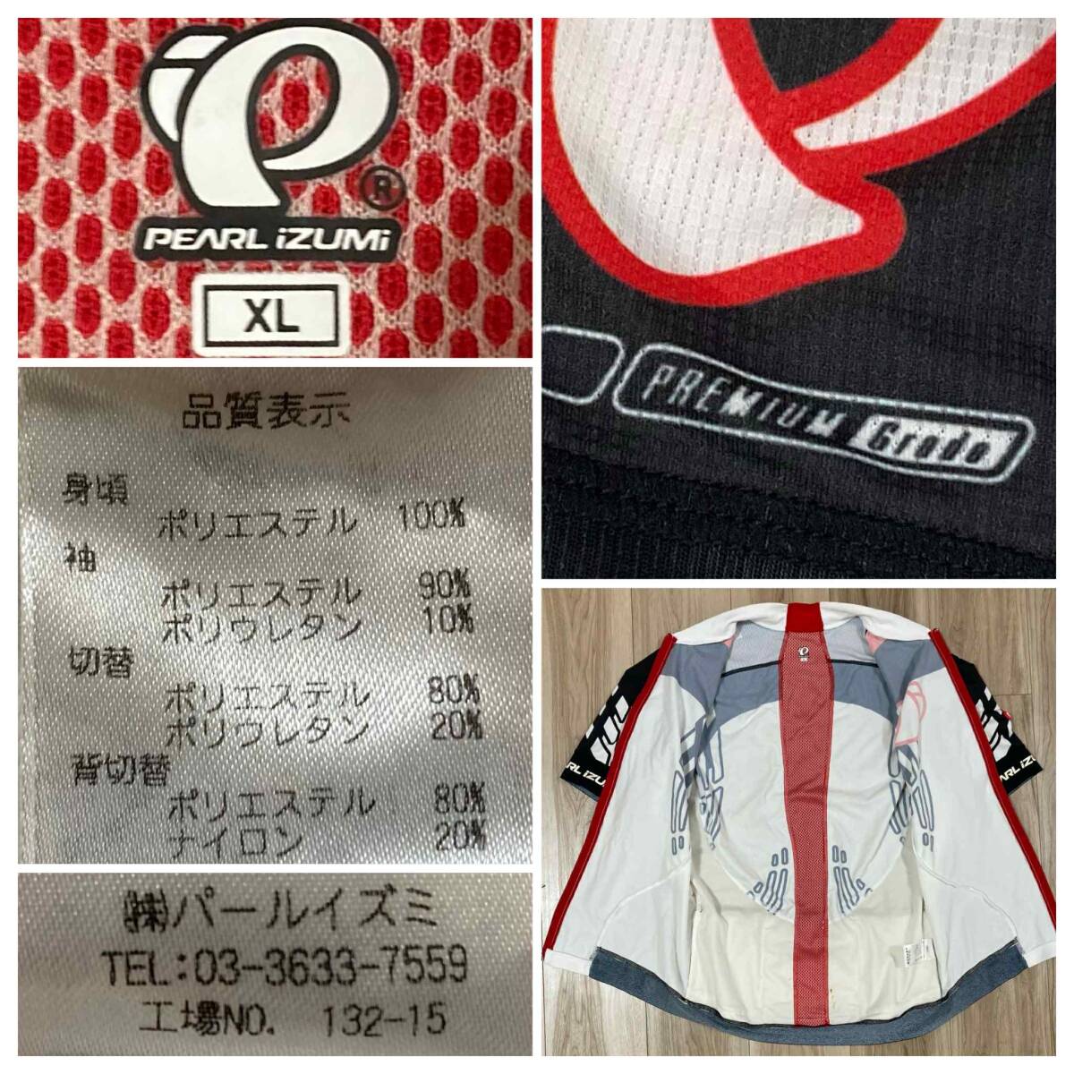 送料230★パールイズミ XL メンズ PREMIUM Grade 半袖ジャージ 脇下&背面メッシュ系 日本製 PEARL IZUMI 3+1ポケット 良質品 n646 白*黒*赤
