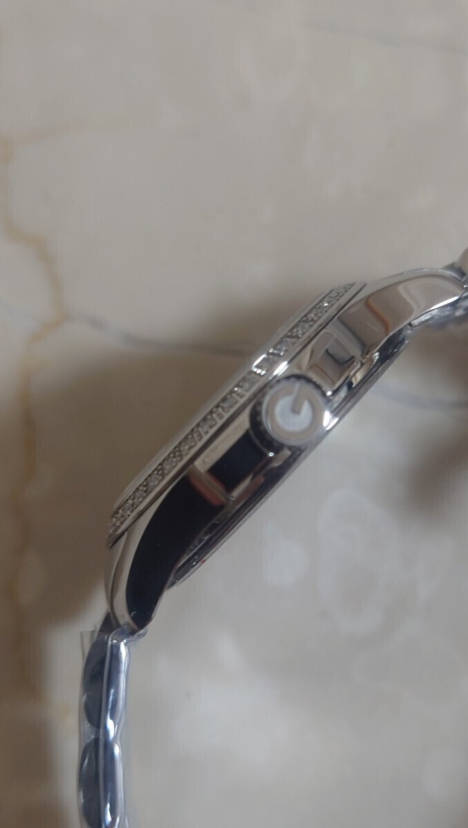 文字盤にマザーオブパール、ダイヤがあしらわれた高級感のあるモデルです。