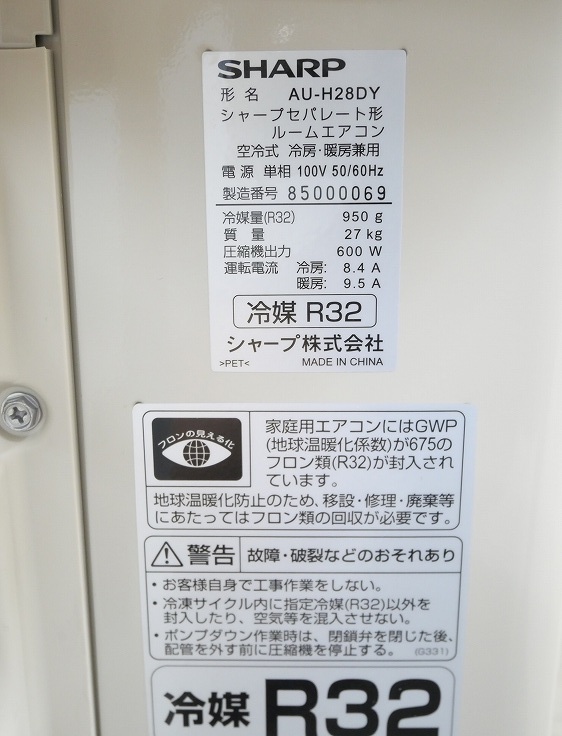 【未使用品】【室外機のみ】シャープ製/ルームエアコン/10畳用/AU-H28DY(7090575-3/4)