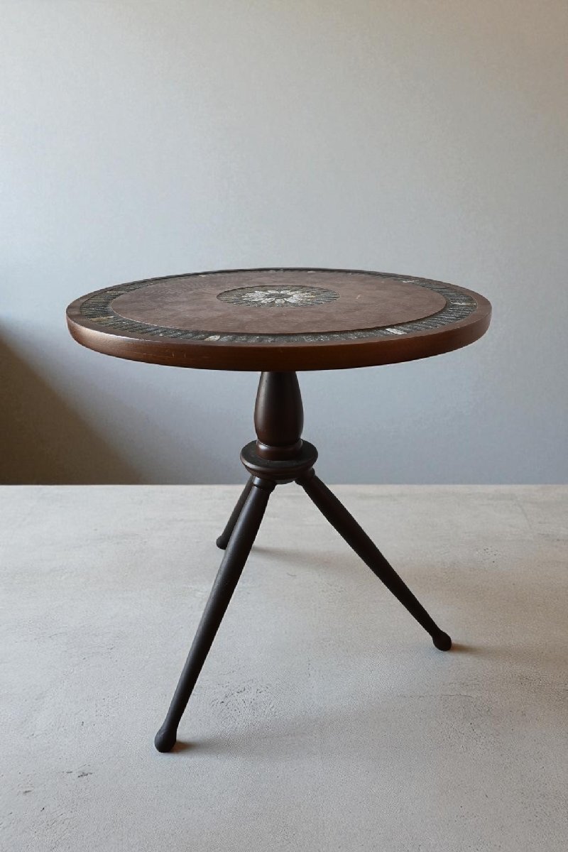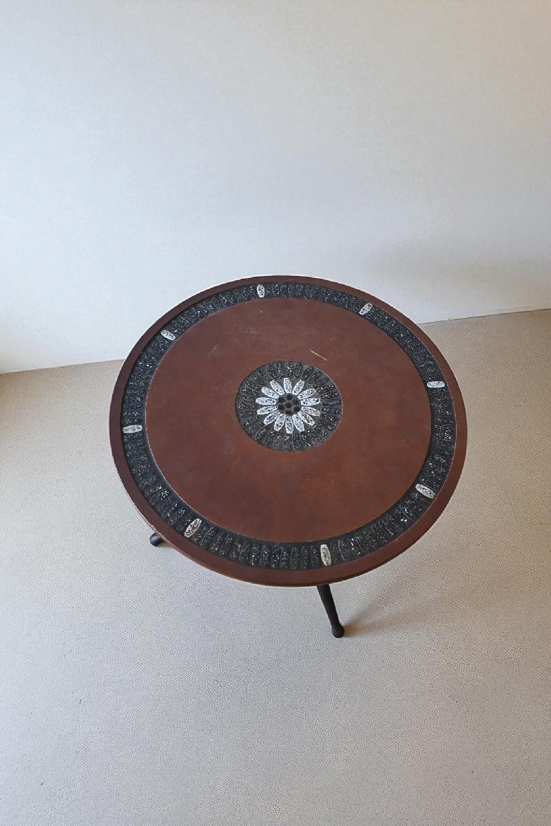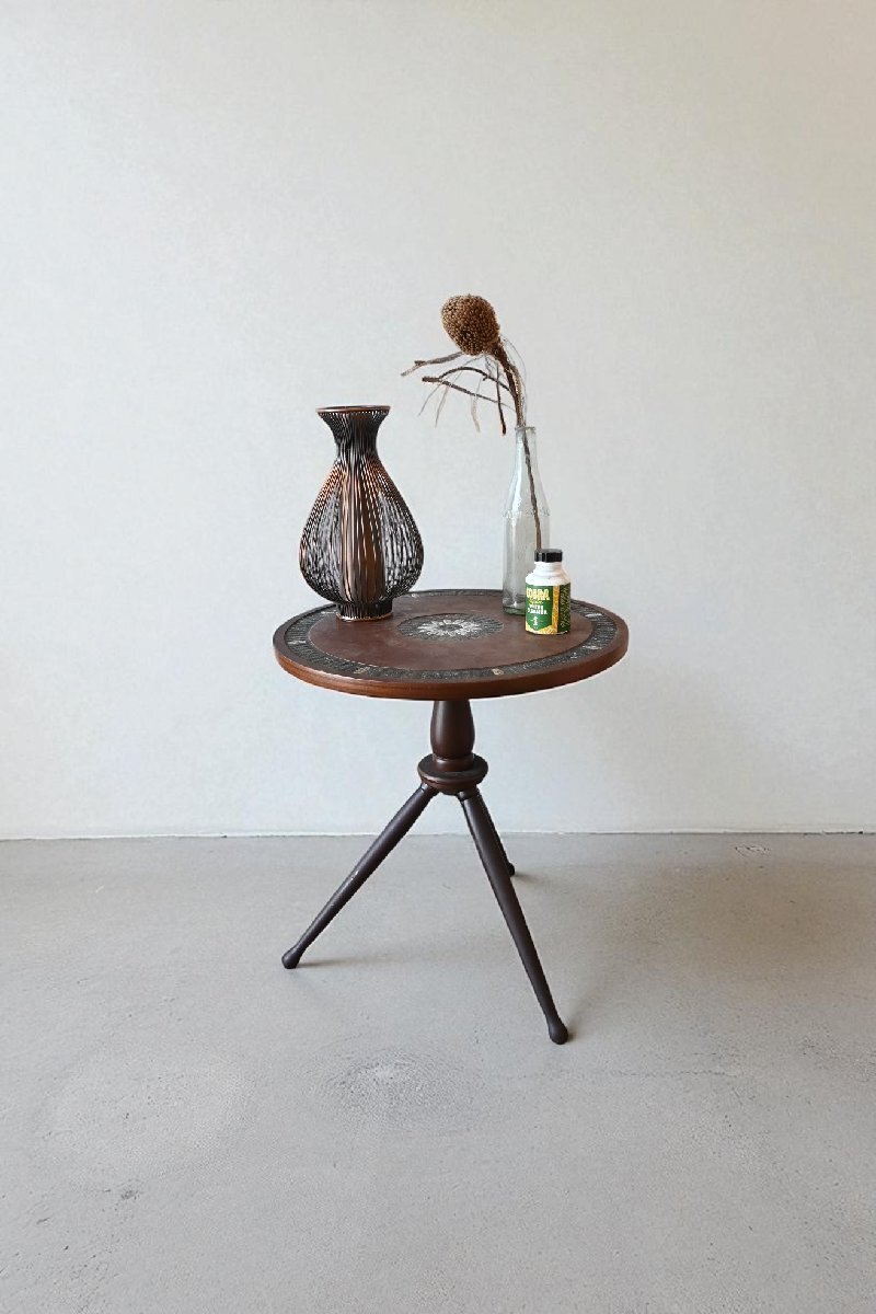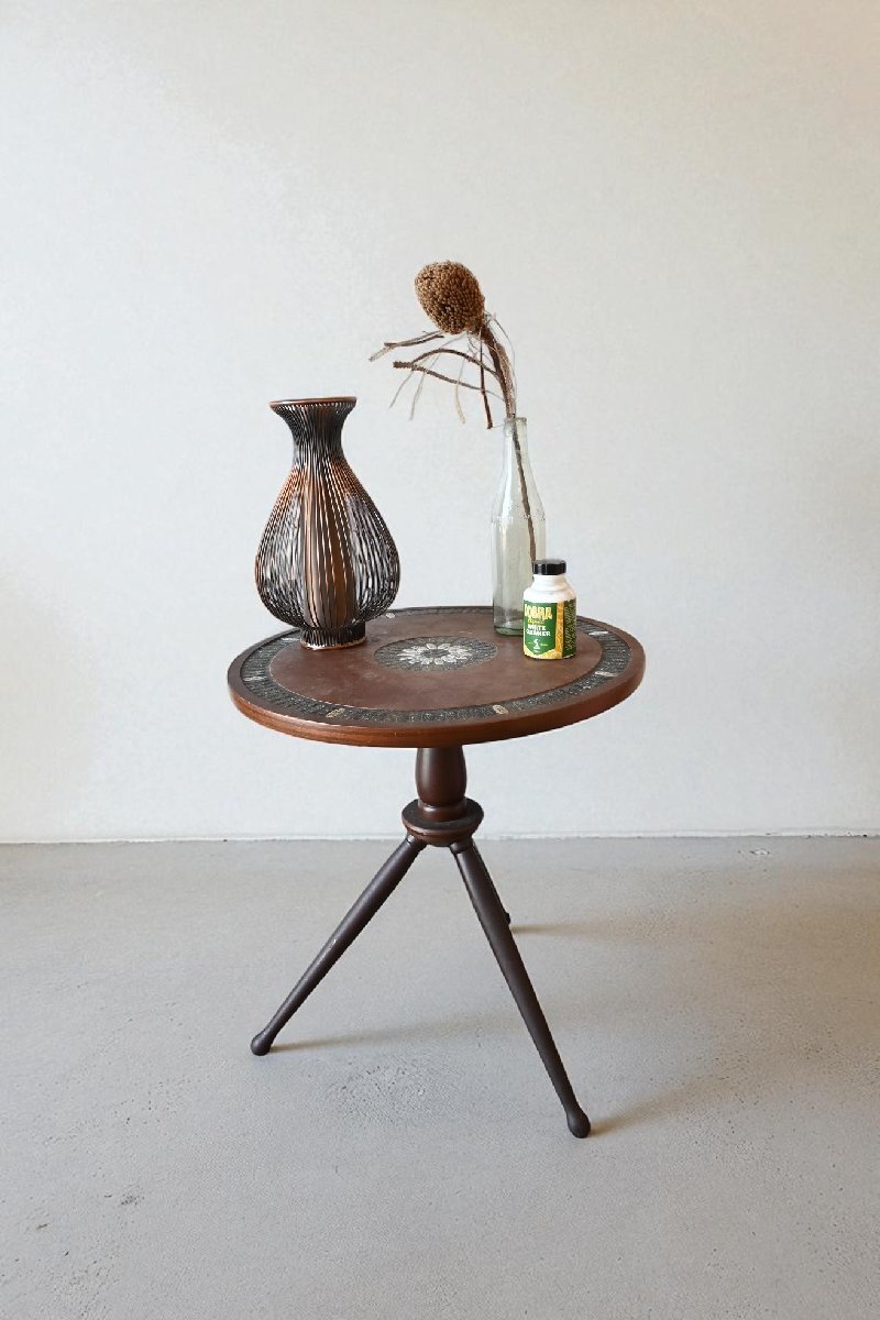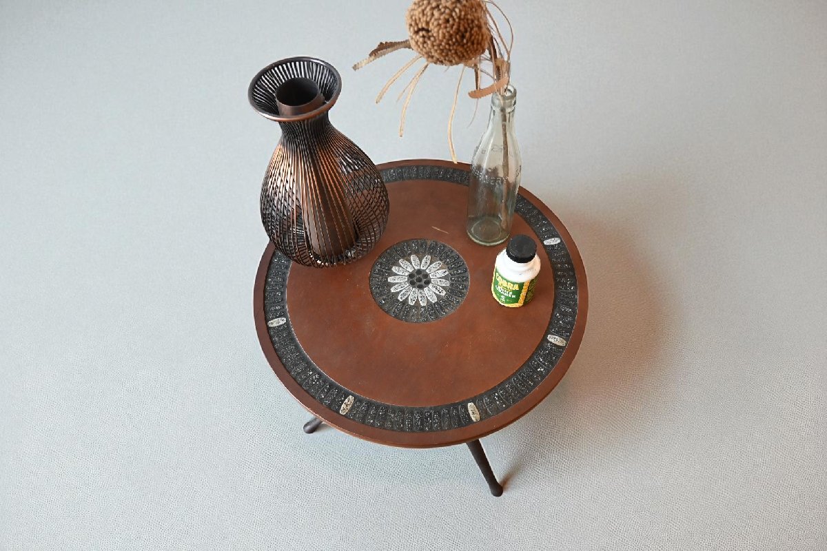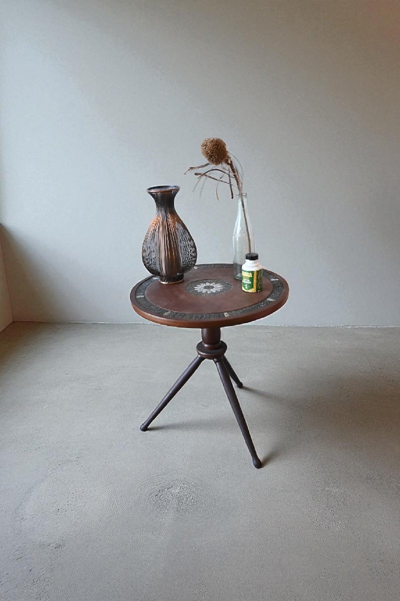 title:可愛いタイル模様の丸テーブル サイドテーブル 花台 飾り台 エキゾチック ガーデニング ヴィンテージ 古道具のgplus広島 2509i