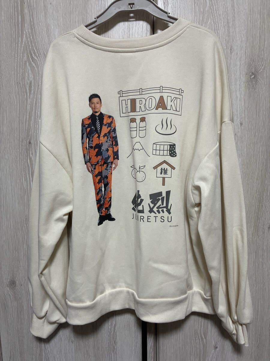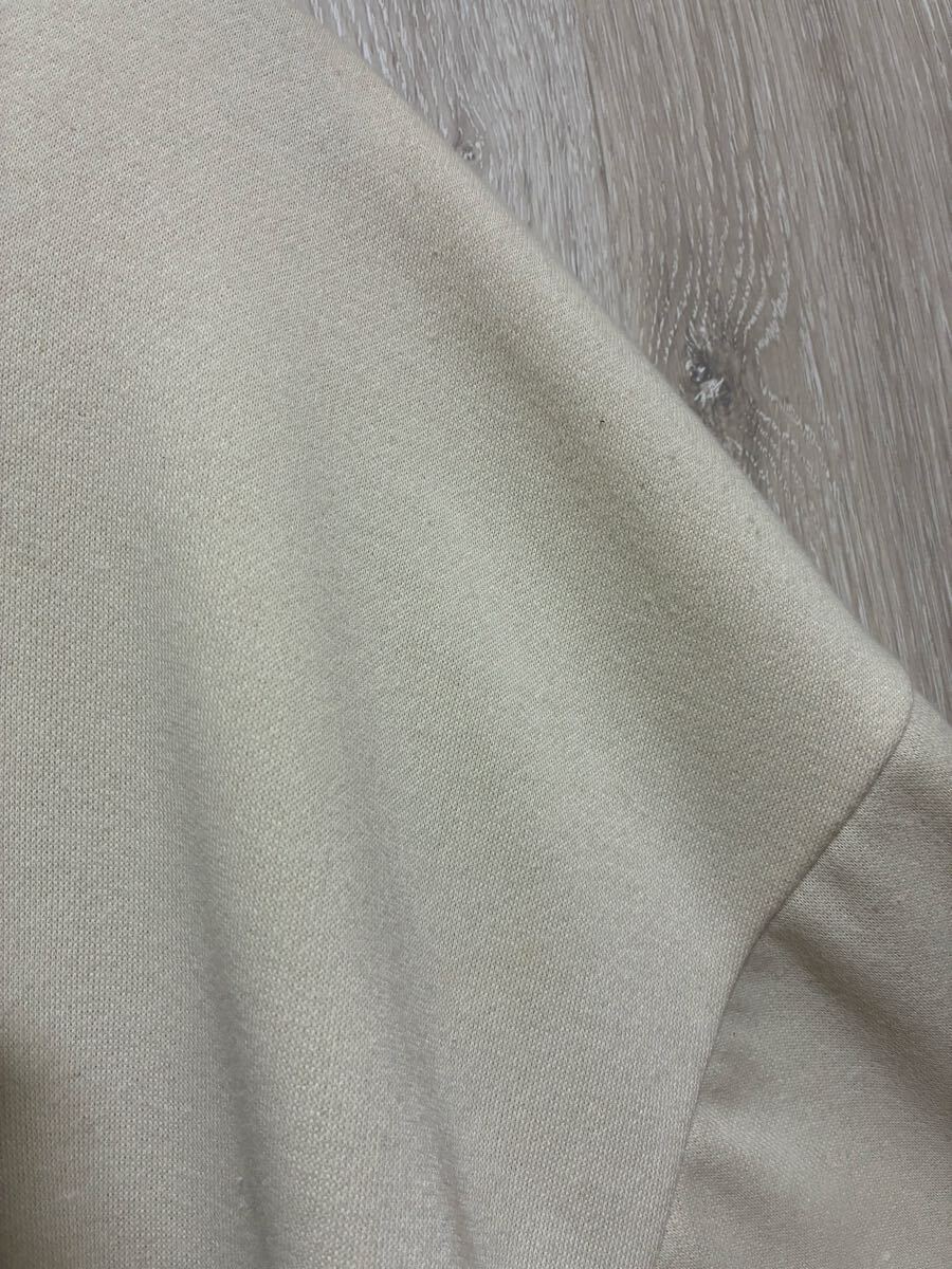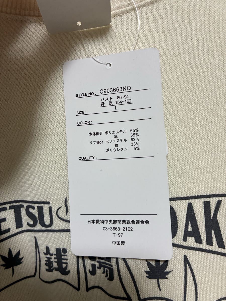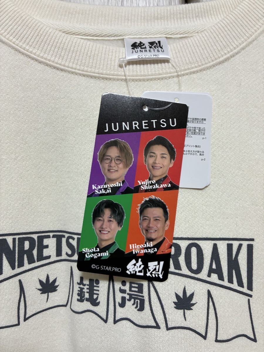 アイボリーのJUNRETSUトレーナー、ポリエステルと綿の混合素材で快適な着心地。