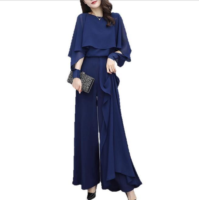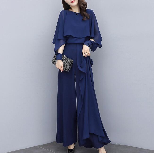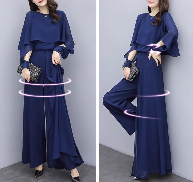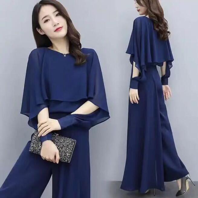 新作Mサイズ レディース上下パンツ スーツ 無地 オシャレ 卒園式 卒業式 入園式 フォーマル シフォン ドレス セットアップ 大人 ブルー