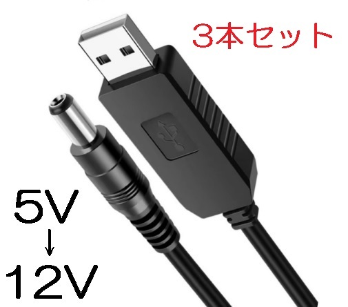 3本セット USB 昇圧ケーブル 送料無料 USB‐DC USB5v-DC12v 5.5-2.1mm 5v‐12v(昇圧コード USB ‐ DC 変換ケーブル 昇圧モジュール