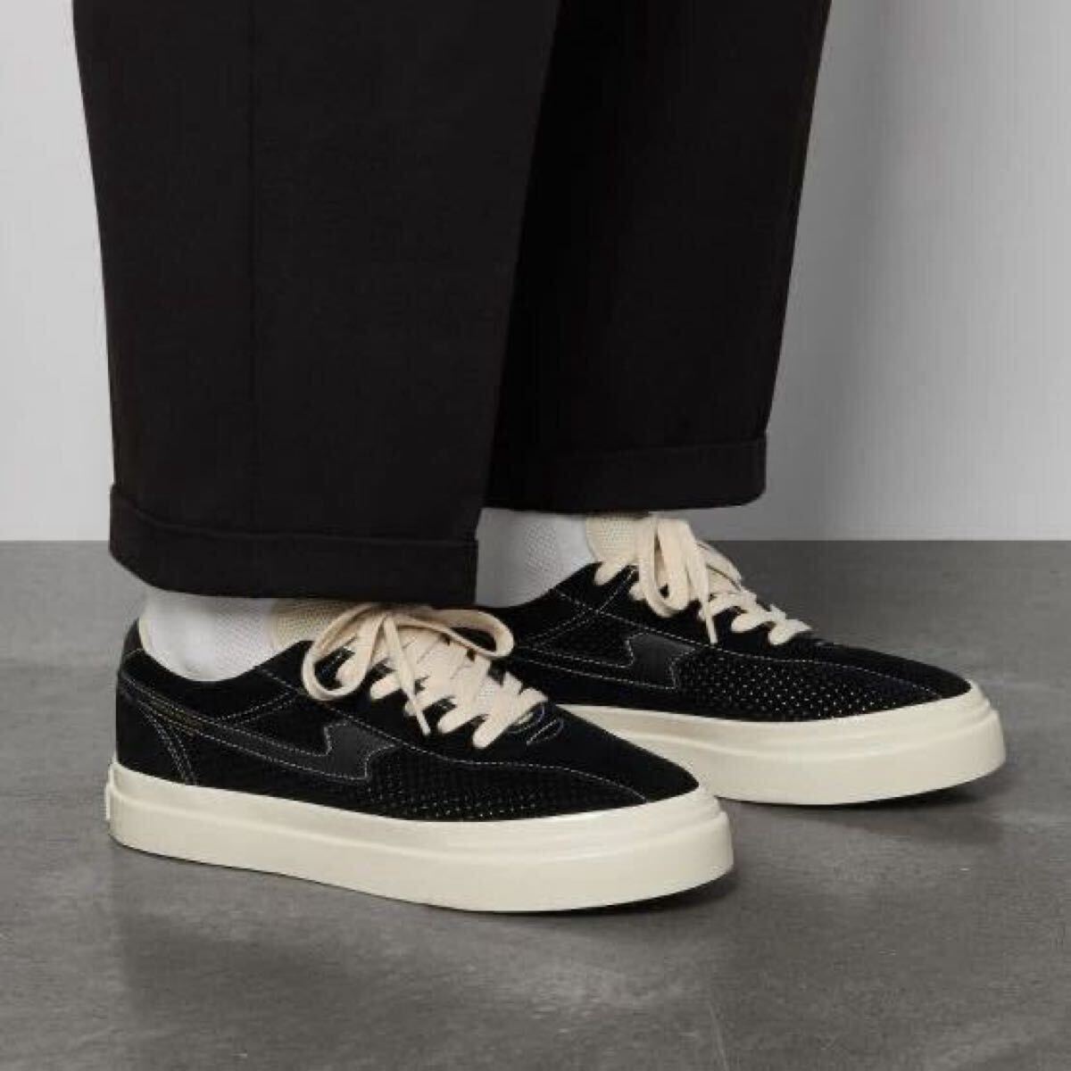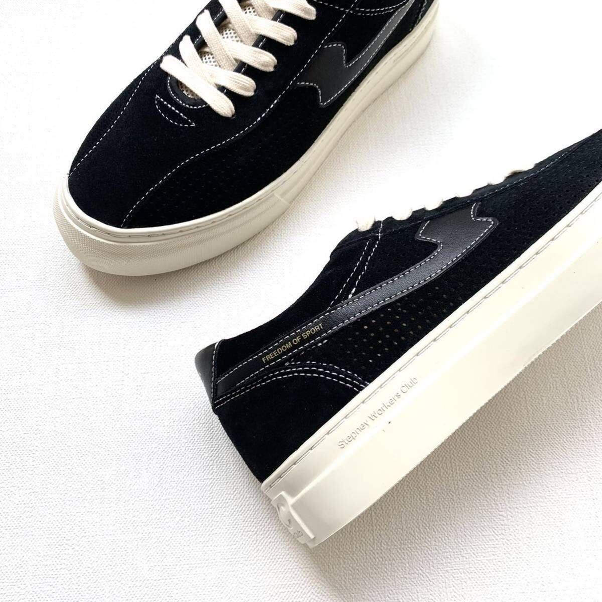S.W.Cのスエード素材のアッパーに、厚手のソールがボリュームを感じさせながらスマートな印象を持たせる、ブランド定番のDELLOW S-STRIKEのパーフォレイテッドモデルです。インソールは歩きやすさを考慮したクッション材付きの取り外せるカップインソールを採用。普通のスニーカーにはない、さり気ない個性を感じさせる一足です。