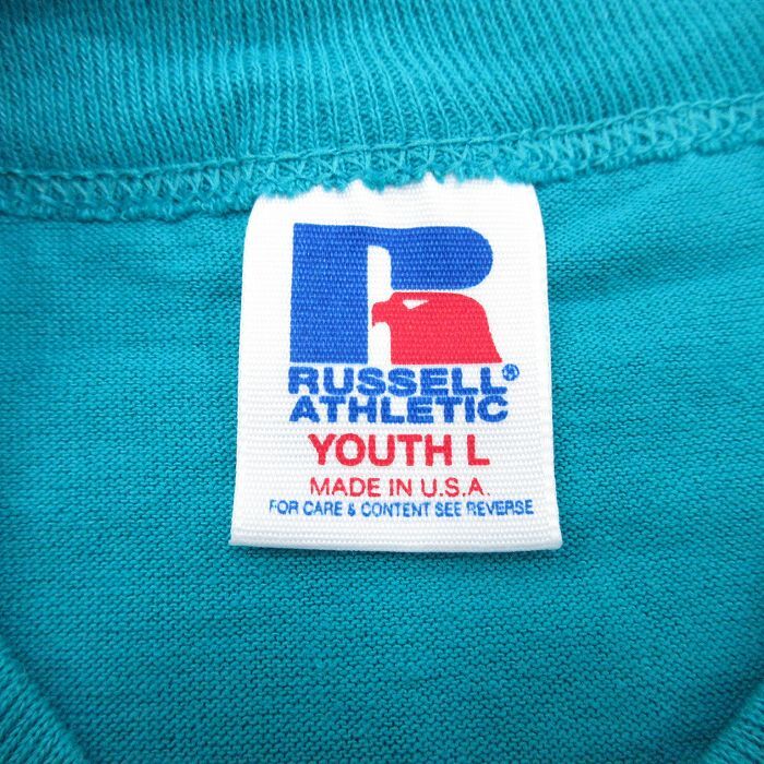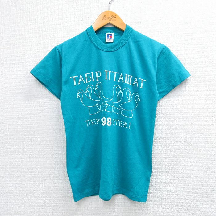 【商品名】 古着 ラッセル 半袖 ビンテージ Tシャツ キッズ ボーイズ 子供服 90年代 90s 鳥 クルーネック USA製 水色【spe】