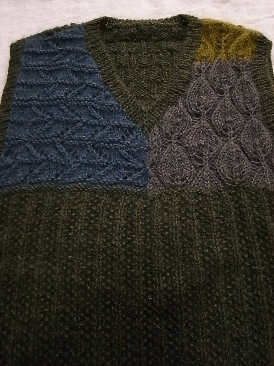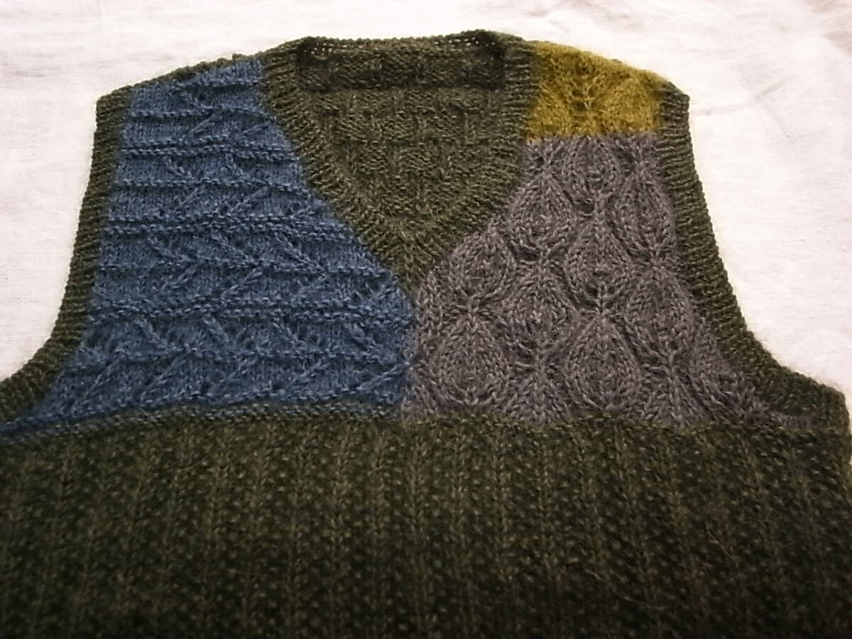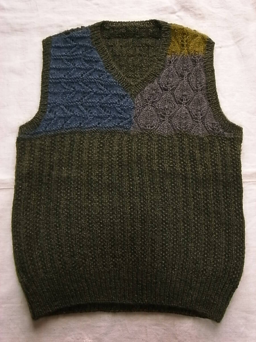 ●90`s HAND MADE ◆モヘア 変則編みベスト・手編み1点モノ・ニットベスト・M程度・美品