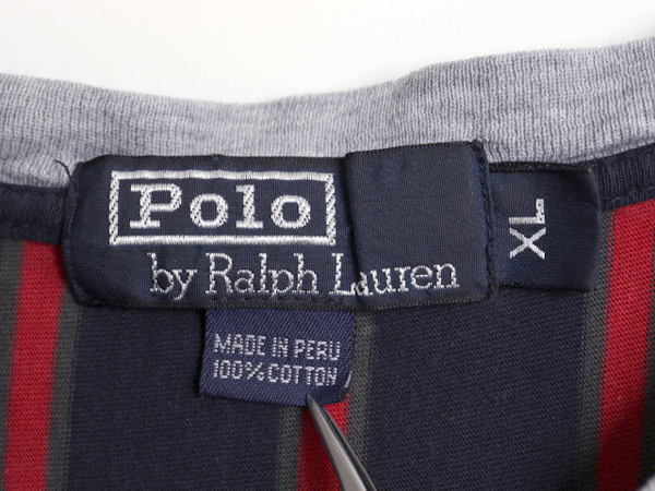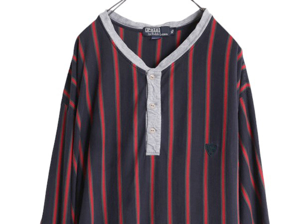 商品名 | 90s ポロ ラルフローレン ヘンリーネック ロング丈 長袖 Tシャツ メンズ XL / オールド グランパ ロンT コットン ストライプ 大きいサイズ |