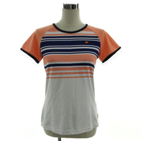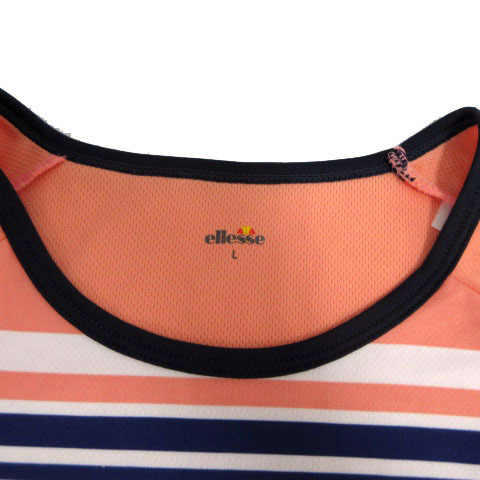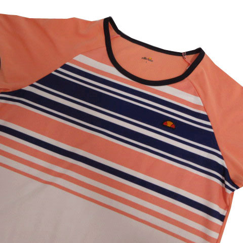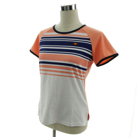 エレッセ ellesse テニス 半袖 Tシャツ Sスリーブプラクティスクルー EW08111 ロゴワッペン ボーダー ホワイト 白 ピンク系 紺系 L