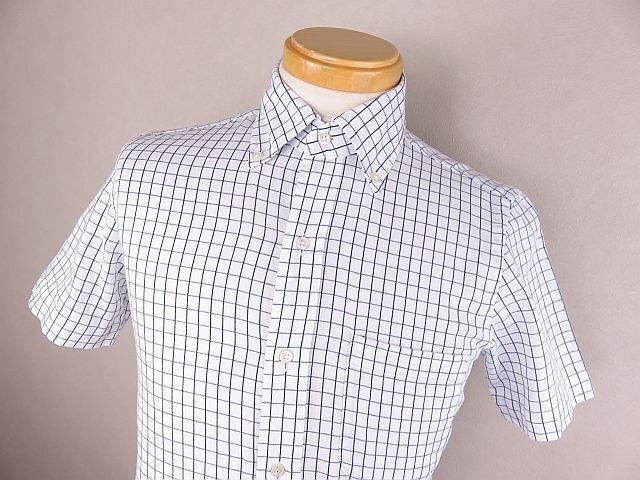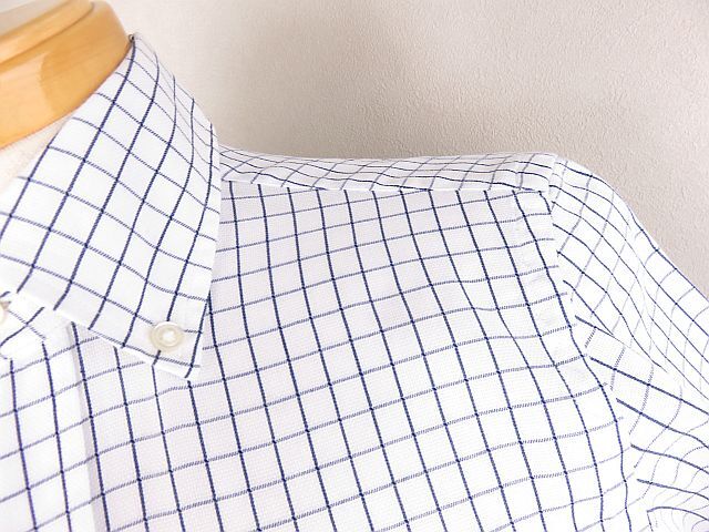 グリーンレーベルリラクシング  半袖シャツ ボタンダウン 白 青 S