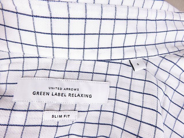 グリーンレーベルリラクシングの半袖ボタンダウンシャツで、爽やかさと清潔感を演出。白と青のカラーリング、Sサイズで上品なカジュアルスタイルに!