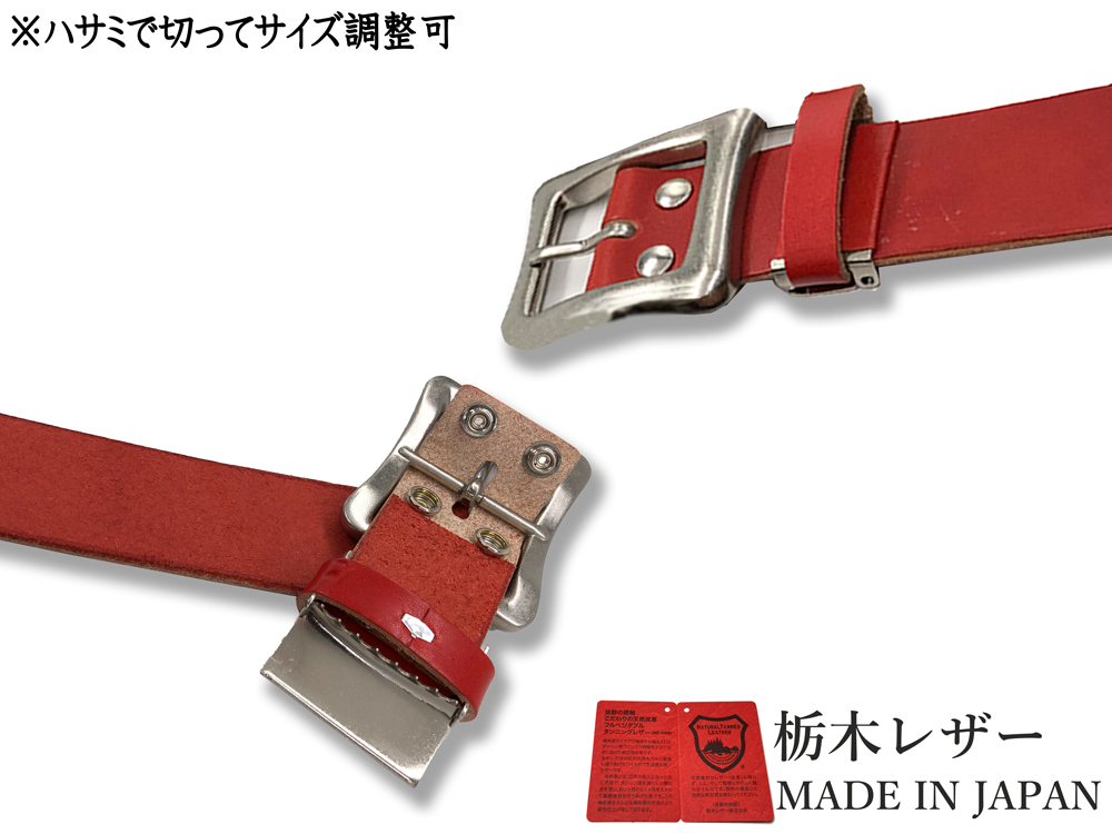 新品 栃木レザーベルト 本革 牛革 ロングサイズ メンズ レディース 国産 日本製 レザー 無地 40mm カジュアル ベルト 赤 レッド W052RD-L