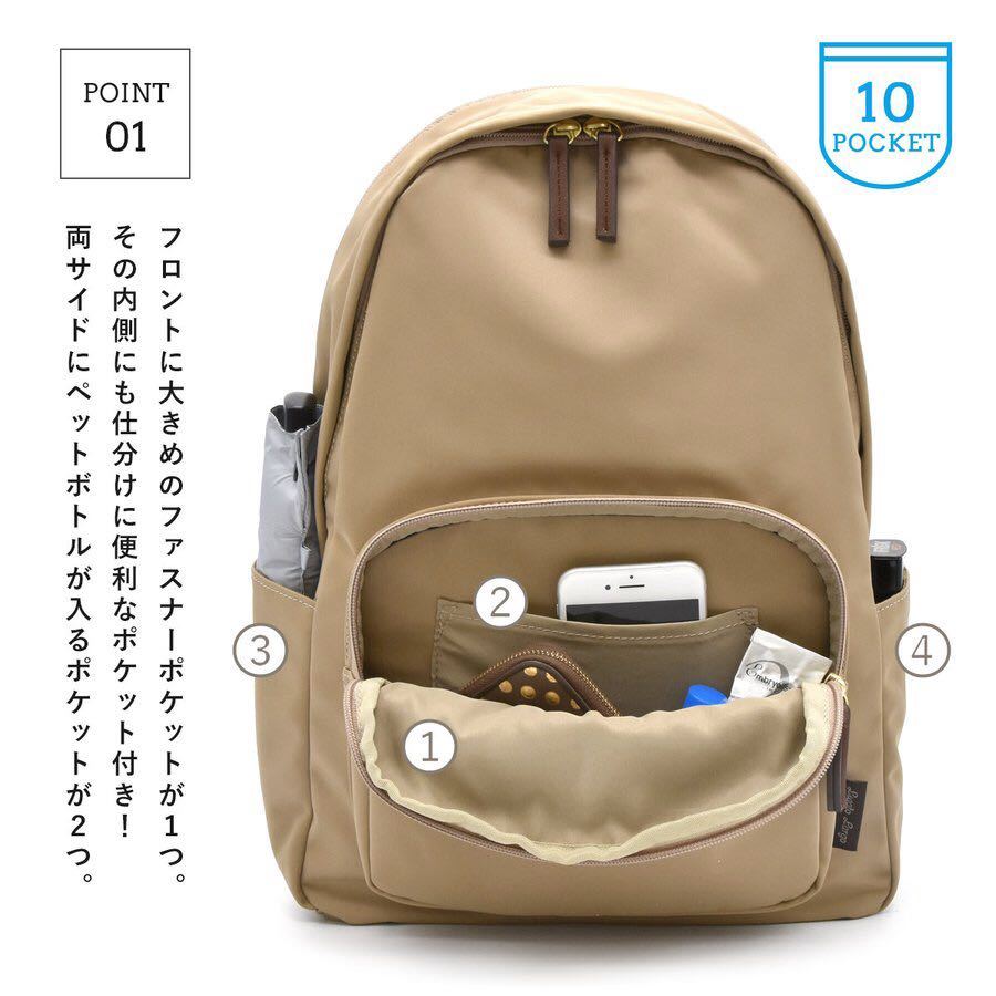 ポケットも10個あるので、使い勝手も抜群。嬉しい撥水加工で、雨の日でも安心です。