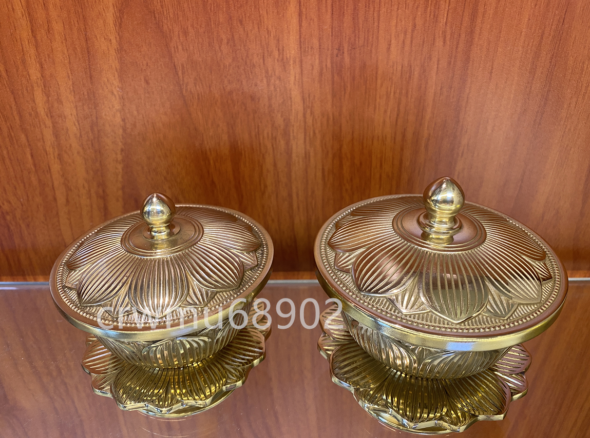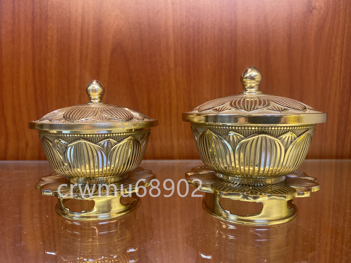 密教法具 蓮華 一面器 前具 洒水器、塗香器セット 真鍮製