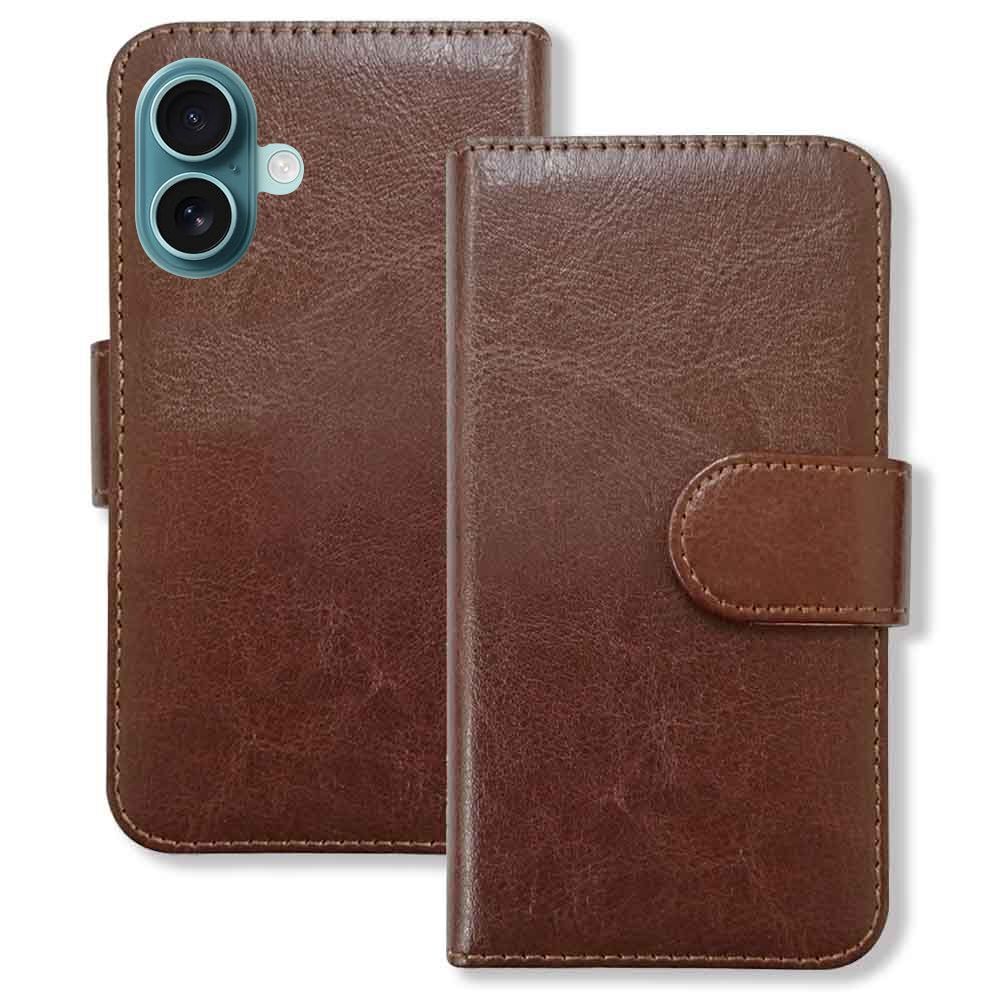 iPhone16 スマホケース(手帳ブラウン)手帳型 PUレザー 無地 ケース ダイアリータイプ 横開き カード収納 カバー