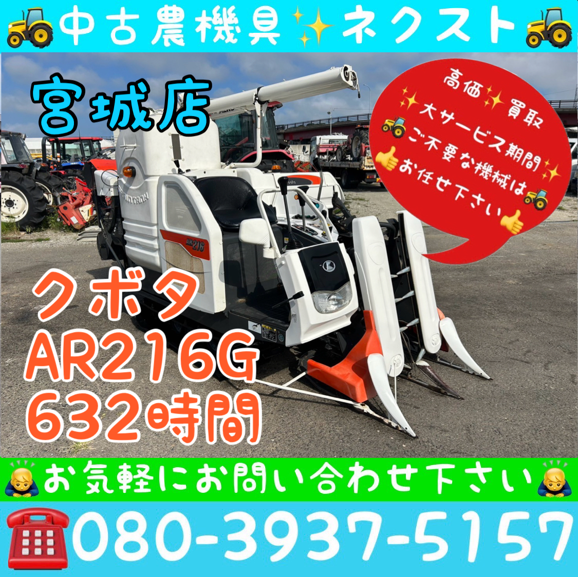 | クボタ AR216-GLW2N 刈取スライド グレンタンク 632時間 2条 コンバイン 取説付き 宮城発 | |