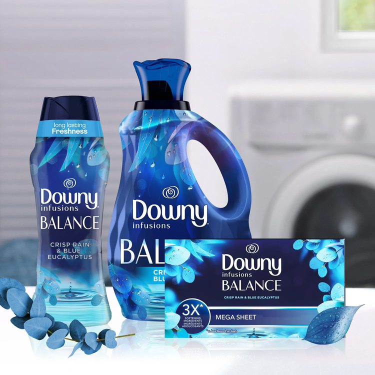 魅力的な香りと驚くほどの柔らかさをお届けする「ダウニー メガ 柔軟シートインフュージョン クリスプレイン&ユーカリプタス BALANCE 80シート」です。