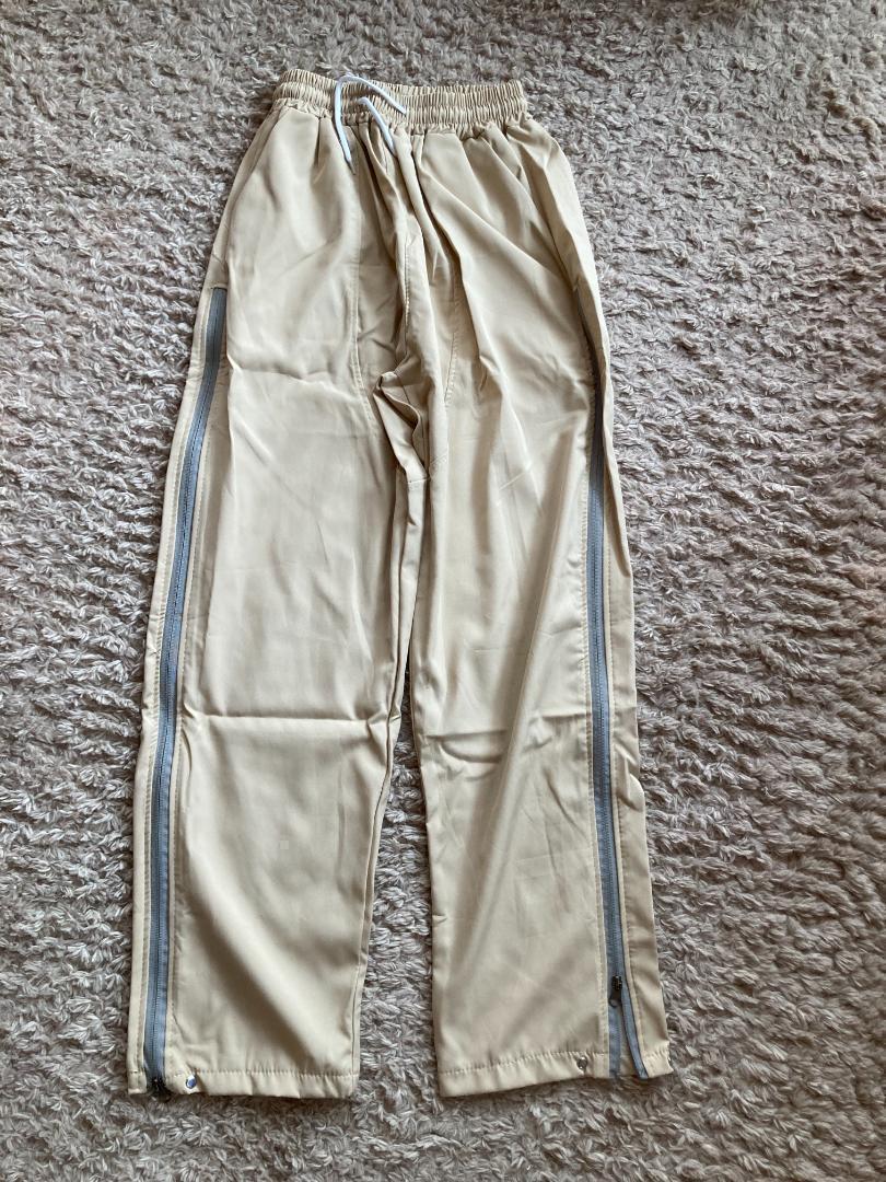 ・パンツのシルエットはストレートでありながら、スリムな印象を与えるシルエットです。これにより、脚のラインを美しく強調してくれます。サイドにあるジッパーのデザインもモダンで、さりげないアクセントになっています。