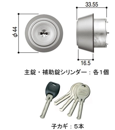 【 商品内容 】主錠シリンダー、補助錠シリンダー各1個、子鍵5本