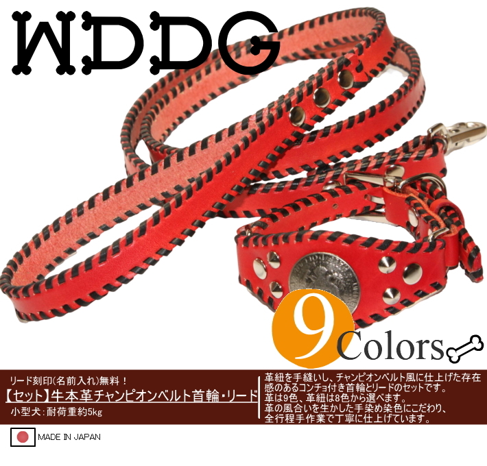 犬 革 首輪 リードセット 名前入り 本革 チャンピオン ベルト リード 首輪セット 小型犬 犬首輪 レザー 牛革 ギフト スタッズ/