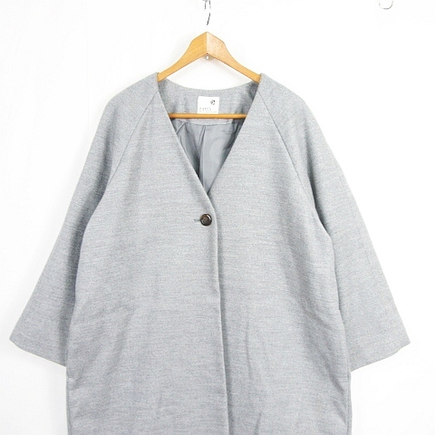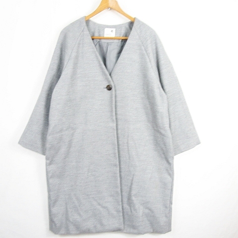アースミュージック&エコロジー EARTH MUSIC & ECOLOGY ノーカラーコート ロング丈 Aライン ストレッチ レーヨン F グレー kz9293 レディース
