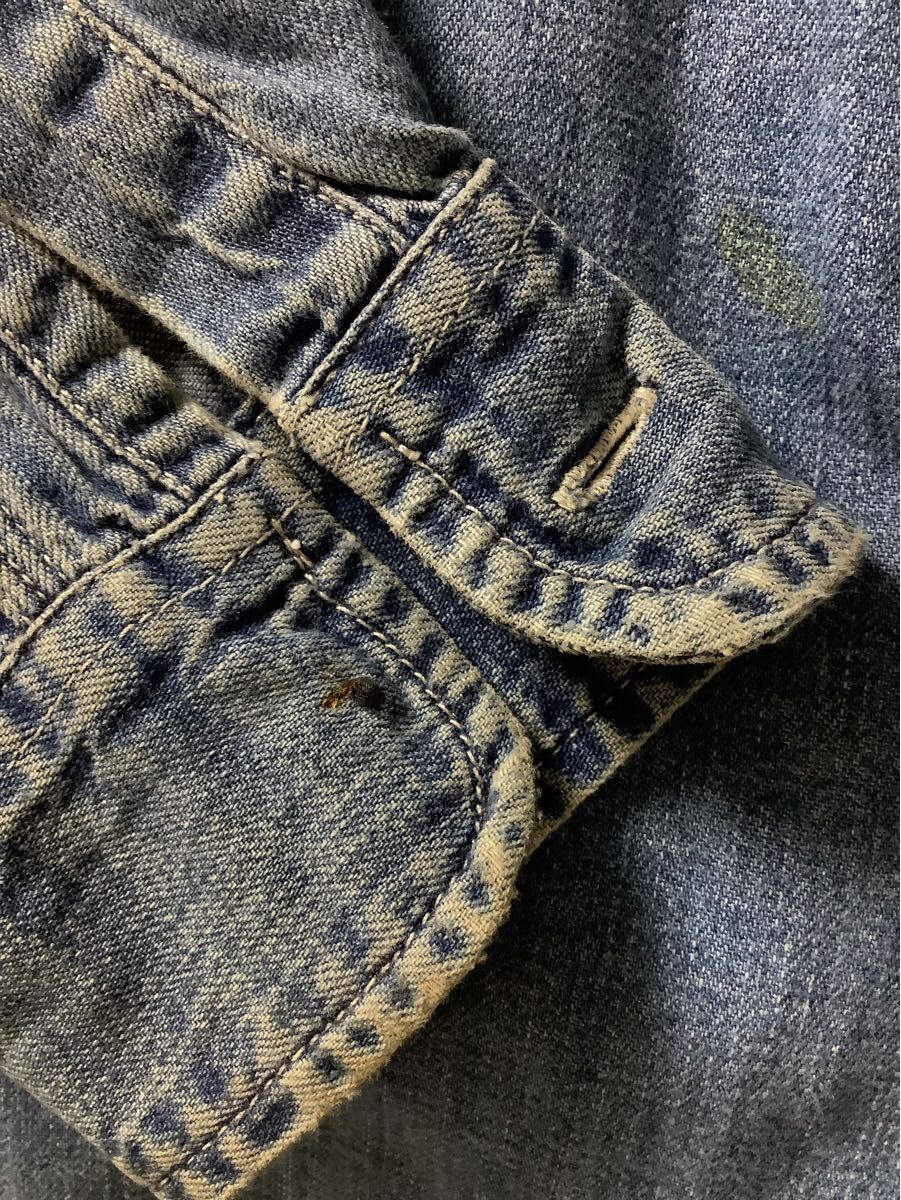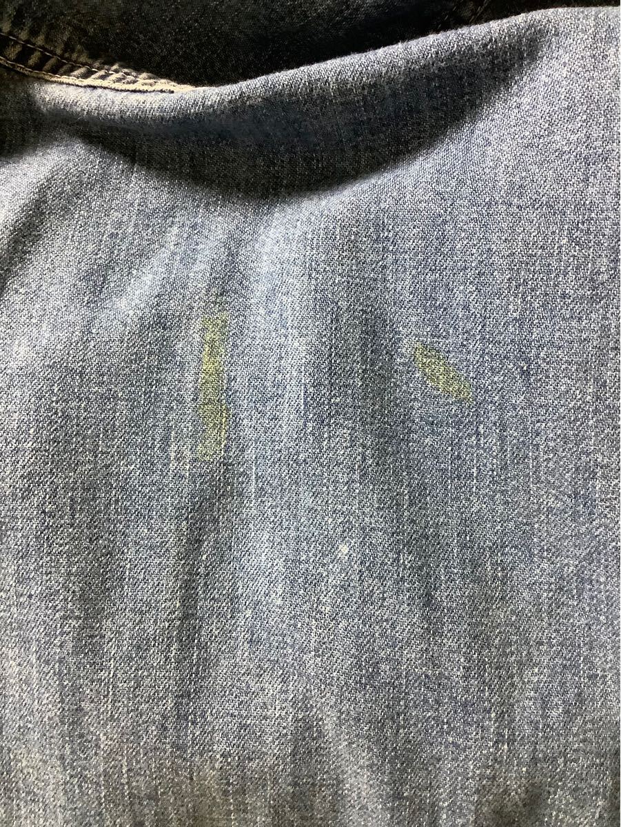使用状況 :中古、多少の使用感、染み汚れ、襟元に色褪せ、袖ボタンが一つ欠品、サビ汚れがあります。