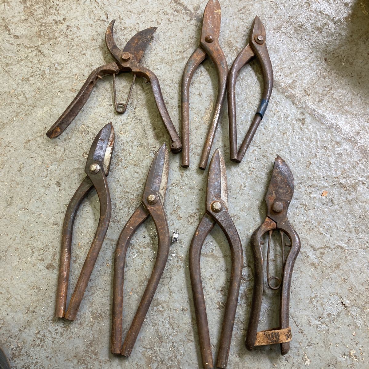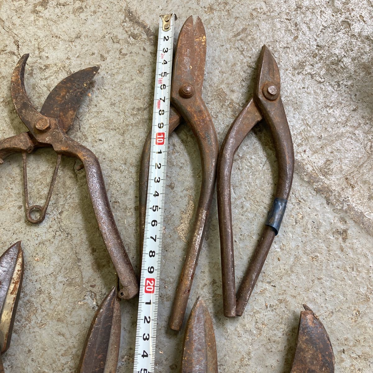【工具】 レトロ アンティーク 昭和 道具 工具 板金 加工 金切はさみ 7丁 セット大工道具 切狭 鋏