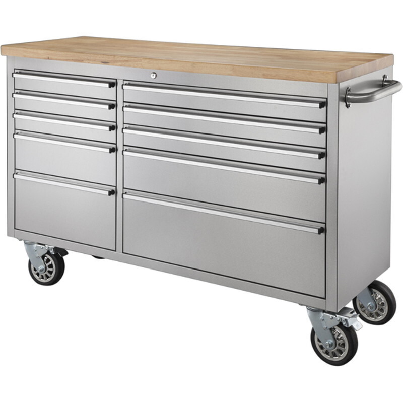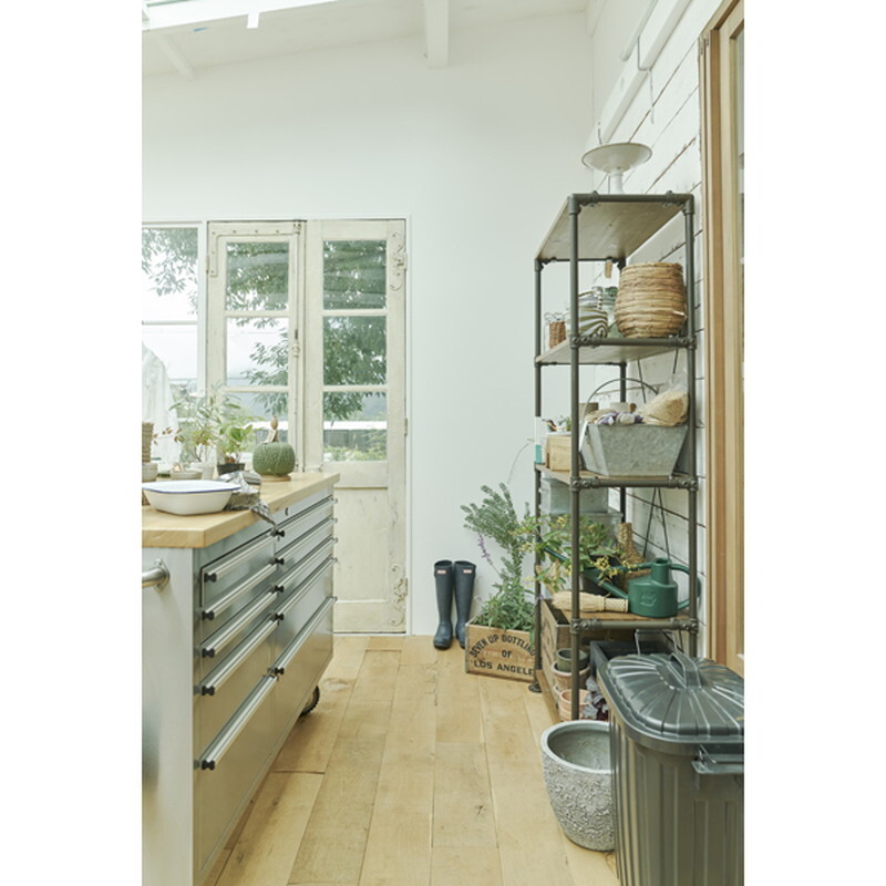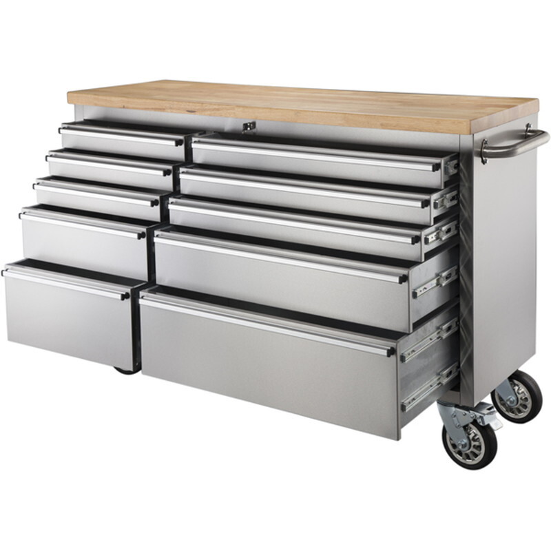 ツールキャビネット 【シルバー】 ステンレス 天然木(ラバーウッド) ウレタン塗装