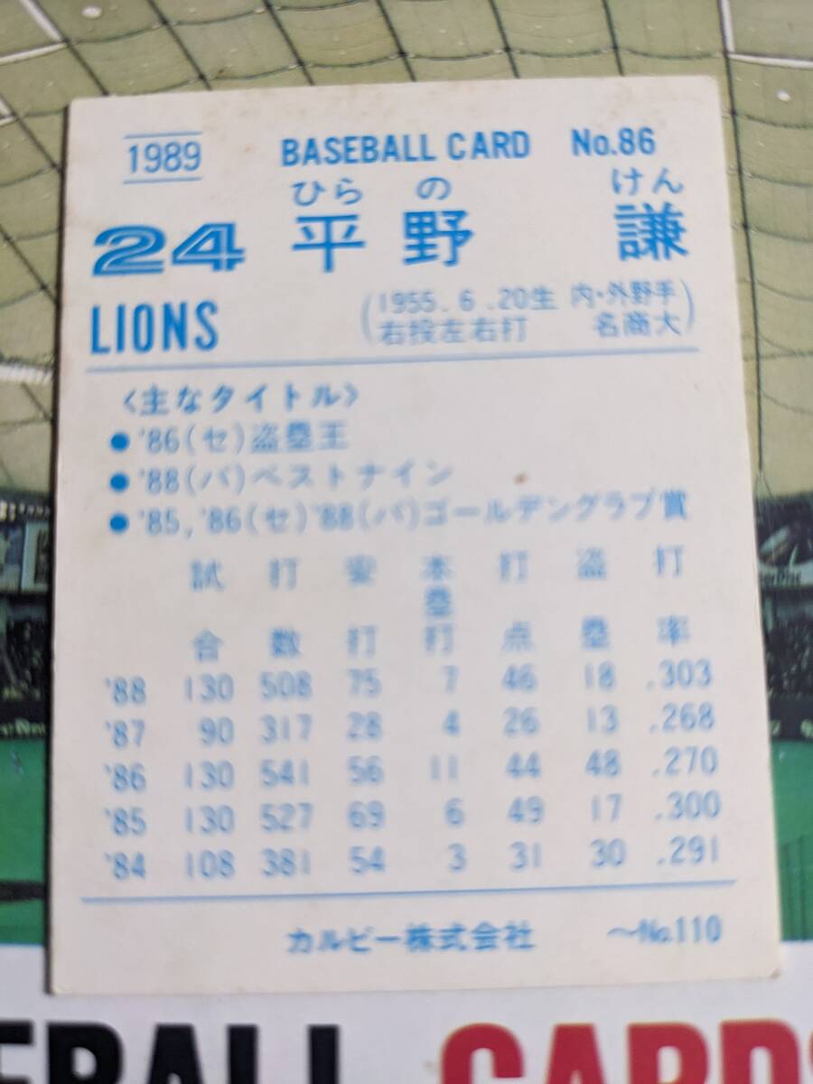 西武 1989年 カルビー プロ野球カード 平野謙 No.86
