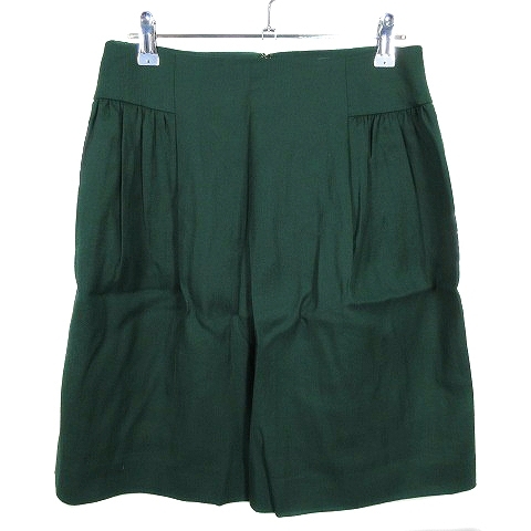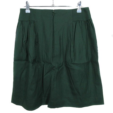 ボールジー BALLSEY トゥモローランド スカート フレア ひざ丈 バックファスナー ギャザー 薄手 ウール 無地 38 緑 レディース