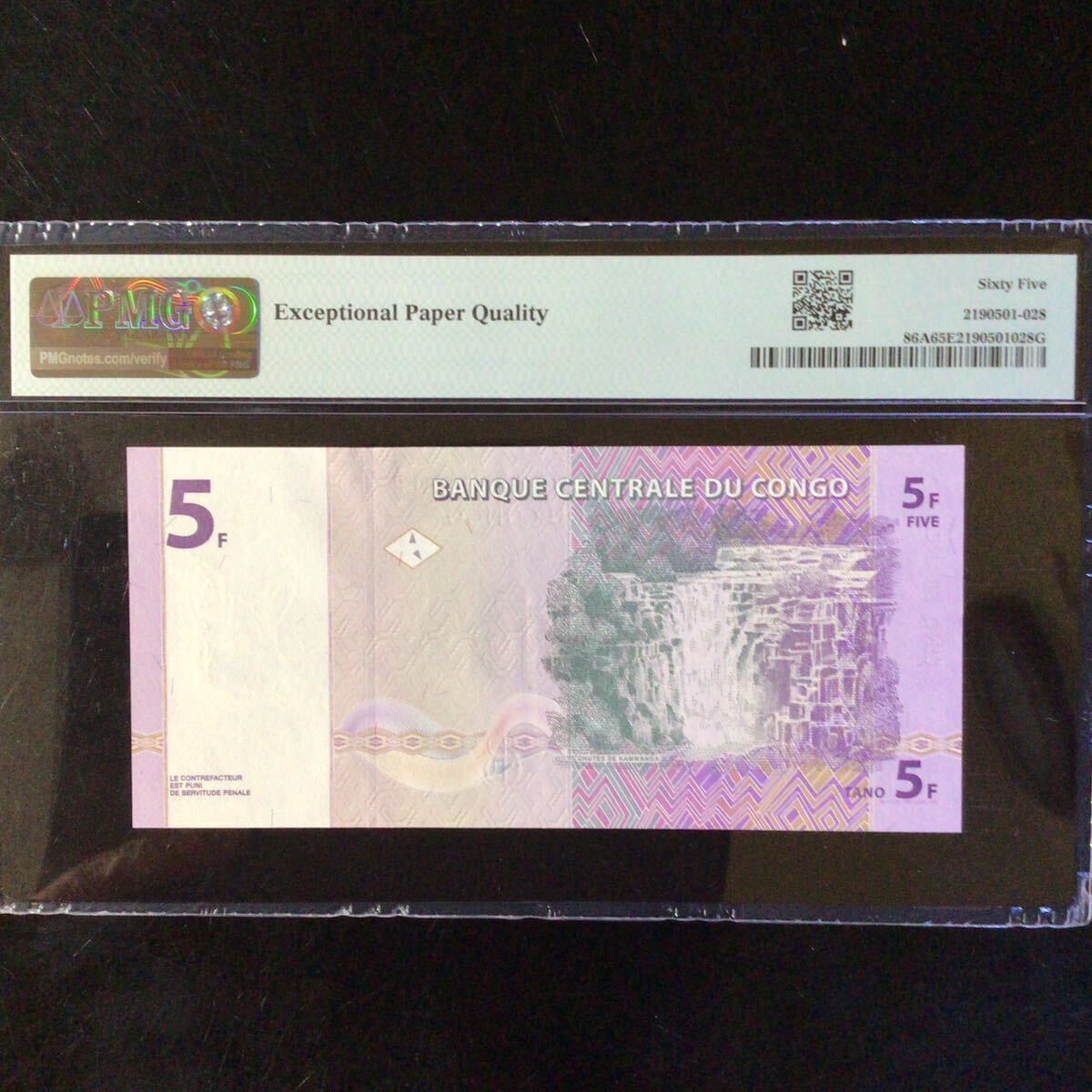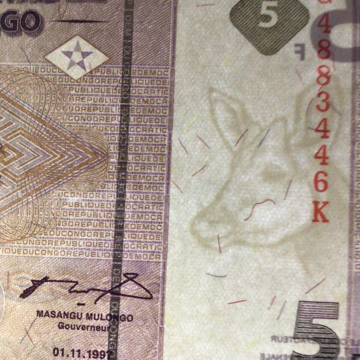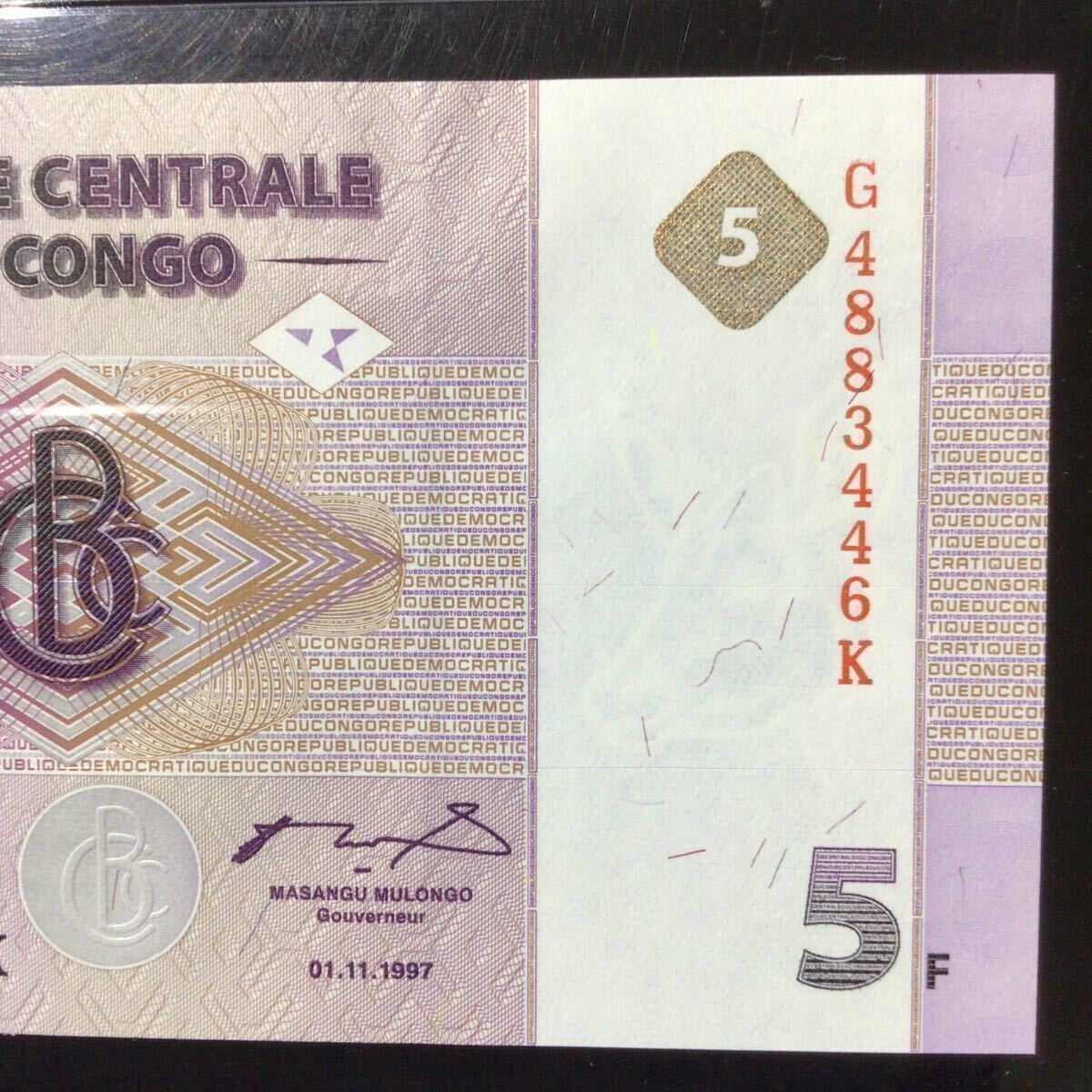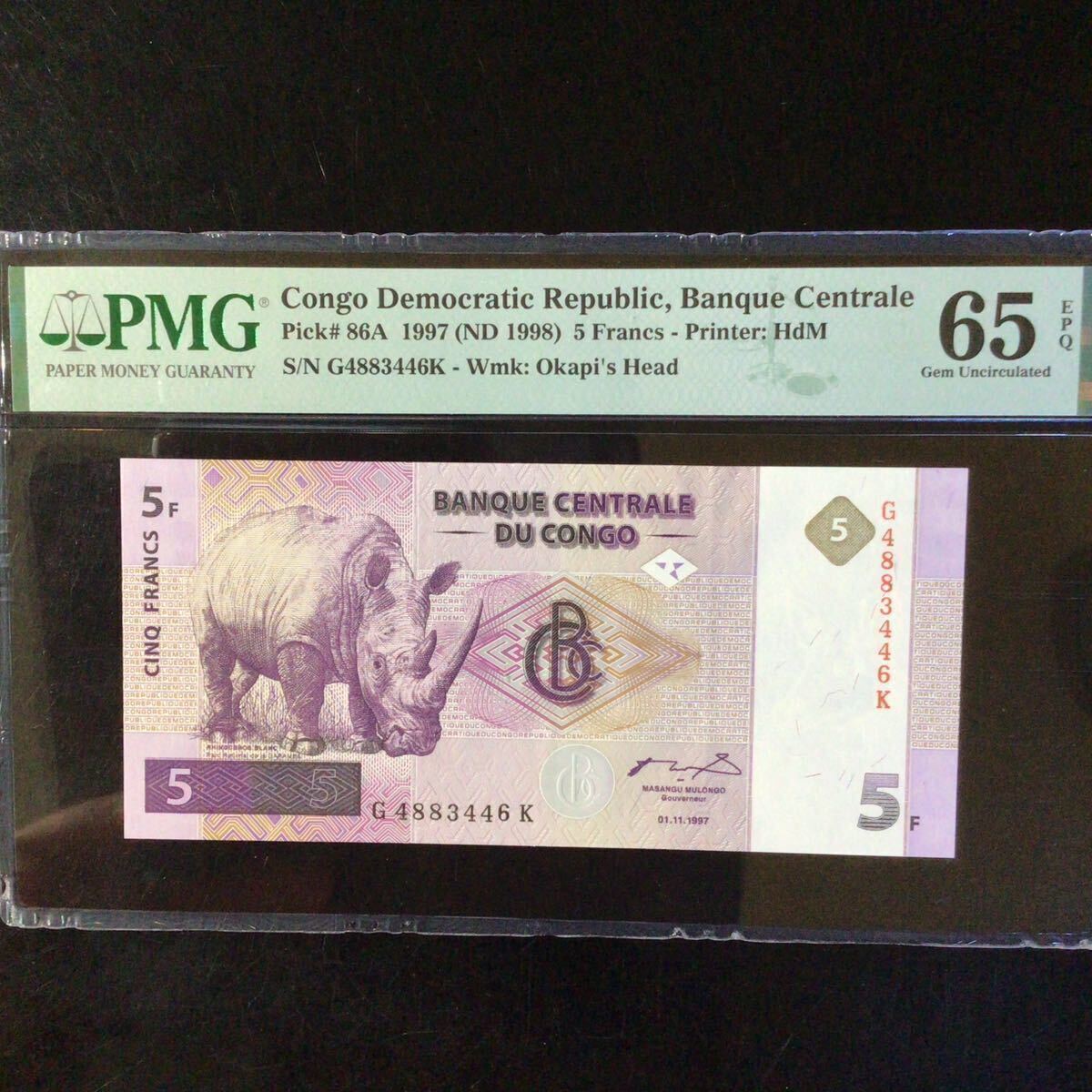 コンゴ民主共和国《中央銀行》5フラン【1997】『PMGグレーディング鑑定 未使用 65 EPQ』*状態表示については、個人によって多少の違いがありますが画像にて判断し納得して頂ける方のみ入札して下さい。