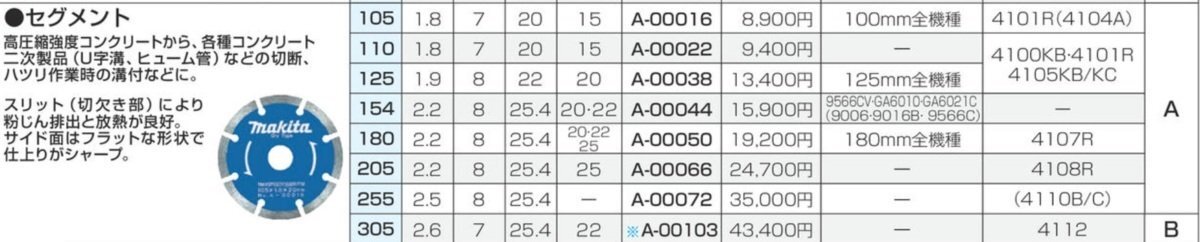 | マキタ makita ダイヤモンドホイール セグメント 154×2.2×25.4mm A-00044 |