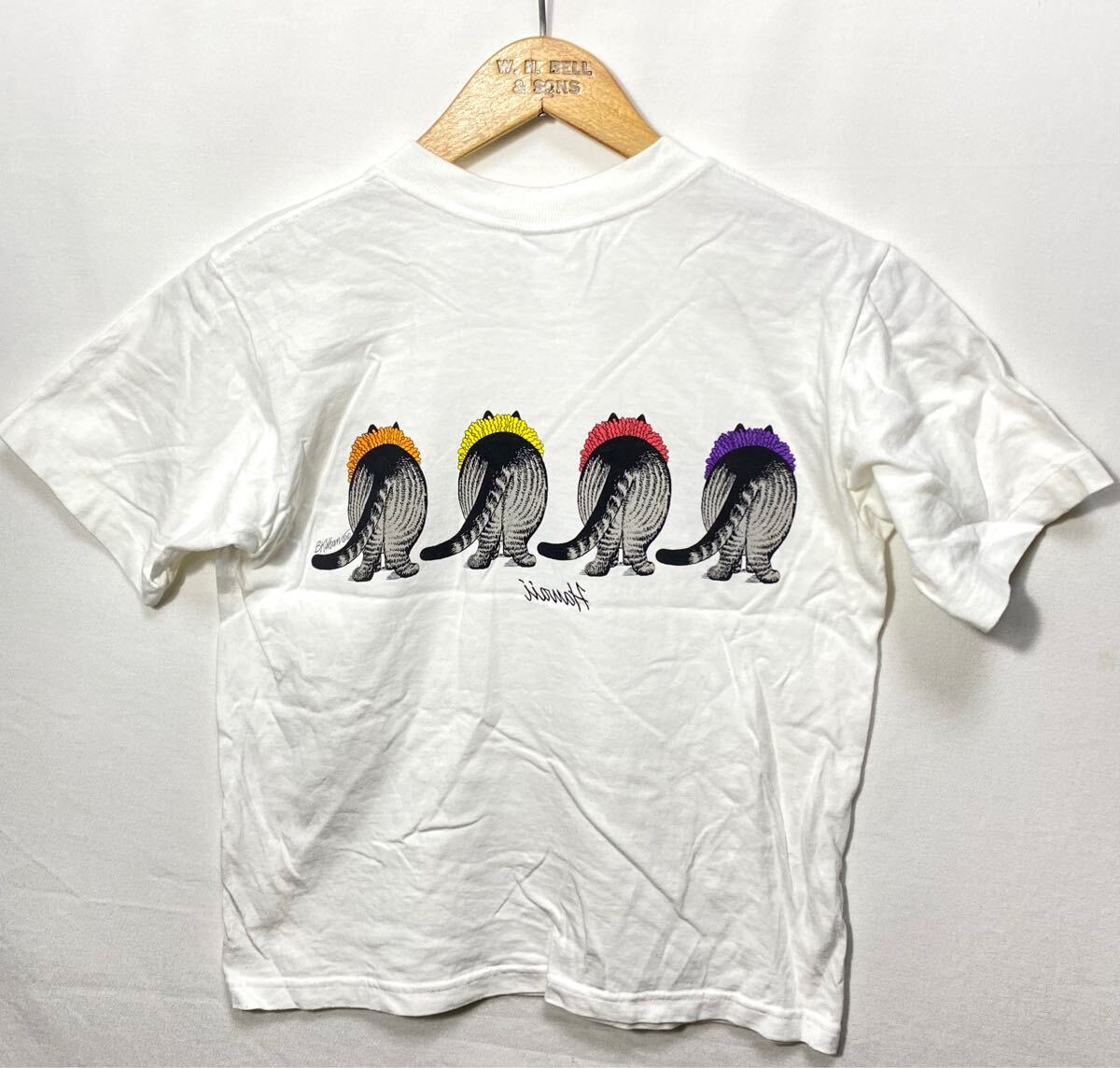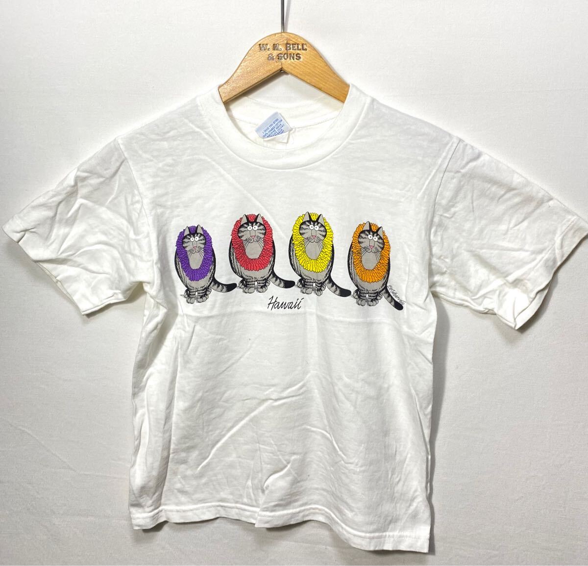 ■ 子供用 90s 90年代 ビンテージ Crazy shirts 両面イラスト シングルステッチ Tシャツ MEDIUM Hawaii ハワイ 猫 ネコ アニマル ■