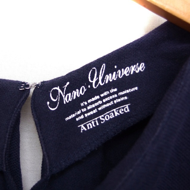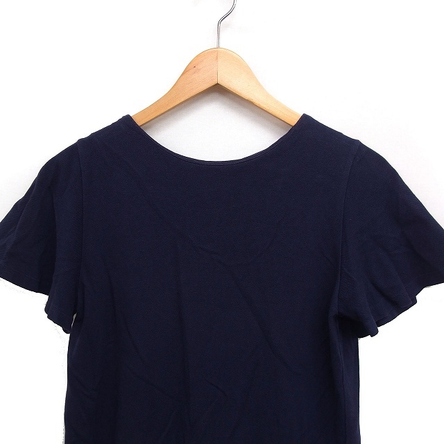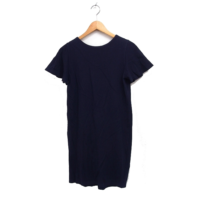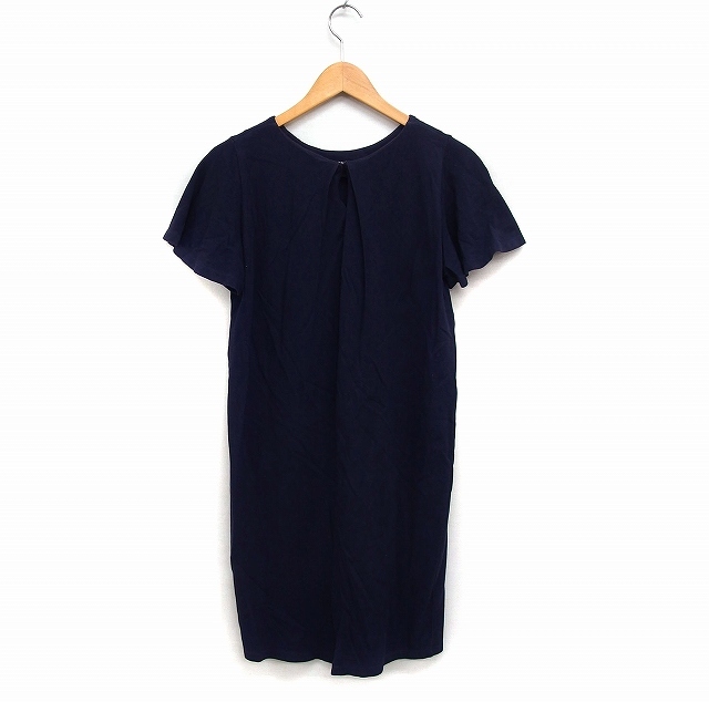 ナノユニバース nano universe フレアスリーブ ワンピース 半袖 ひざ丈 タイト 無地 36 ネイビー 紺 /FT16 レディース