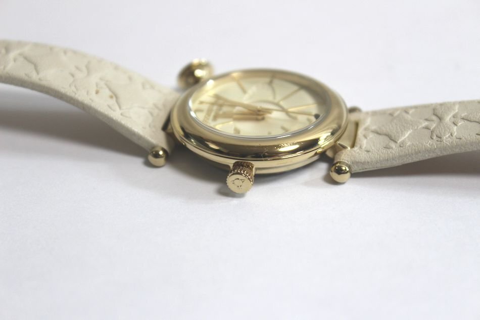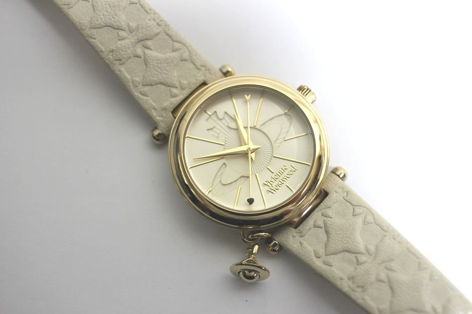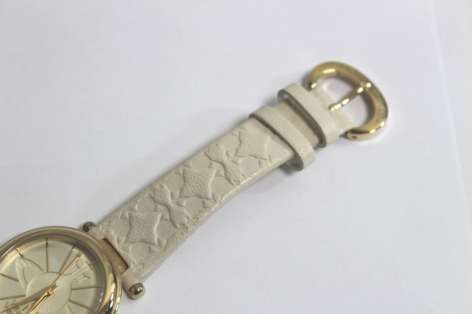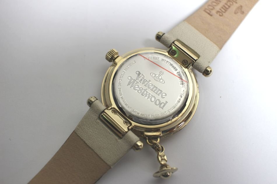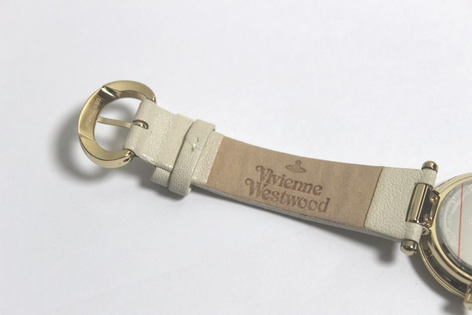 動作品 ヴィヴィアンウエストウッド レディース 腕時計 VV006WHWH-WI 3針 SS レザーベルト クォーツ アイボリー系 ゴールド系 中古 女性用