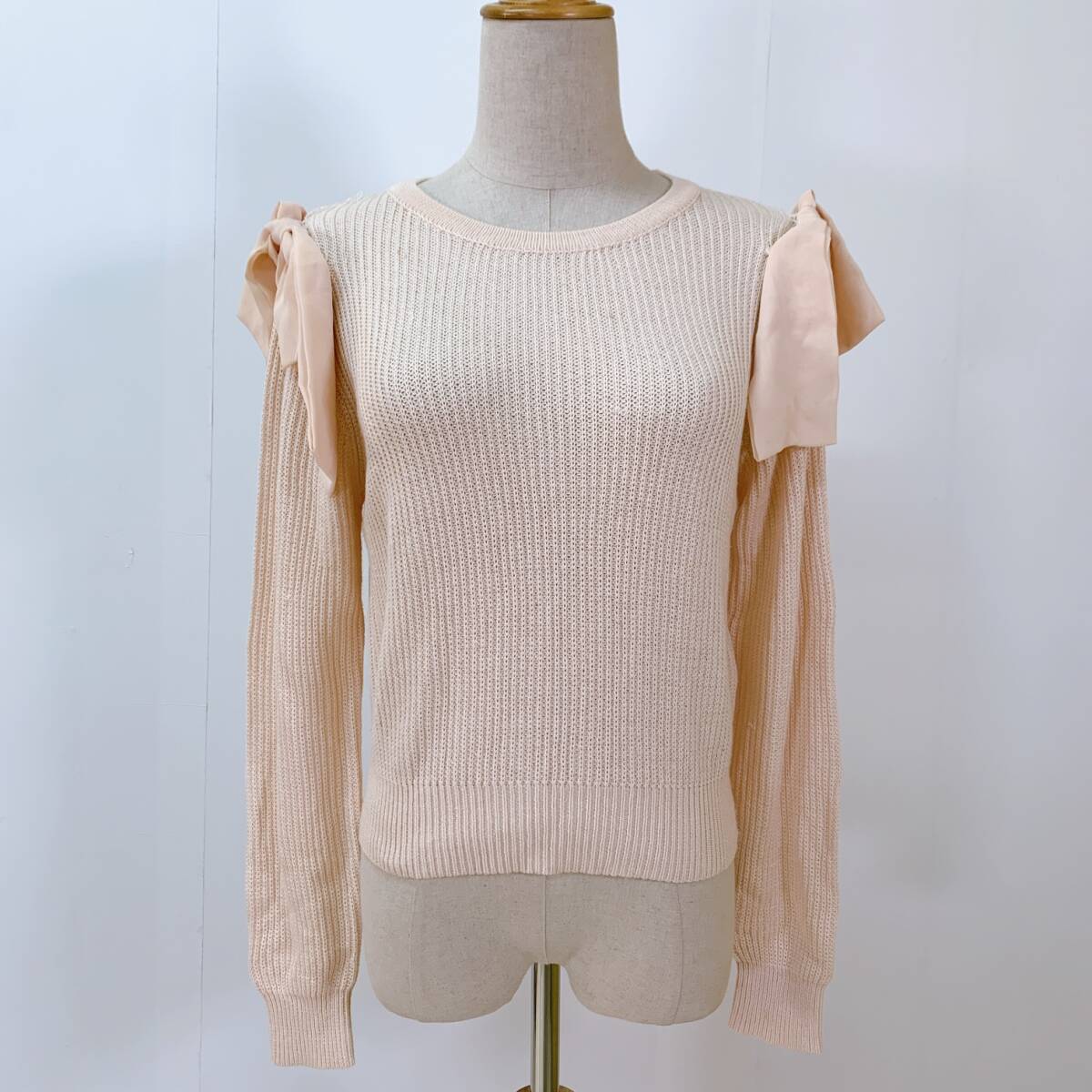 YH1659 earth music & ecology アースミュージックアンドエコロジー レディース 長袖 ニットトップス 丸首 ピンク フリーサイズ 万能 USED