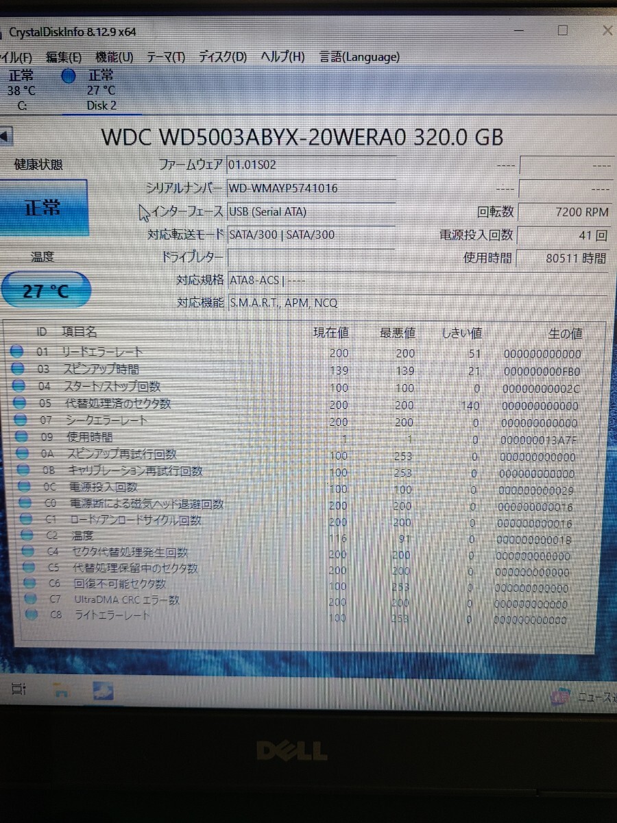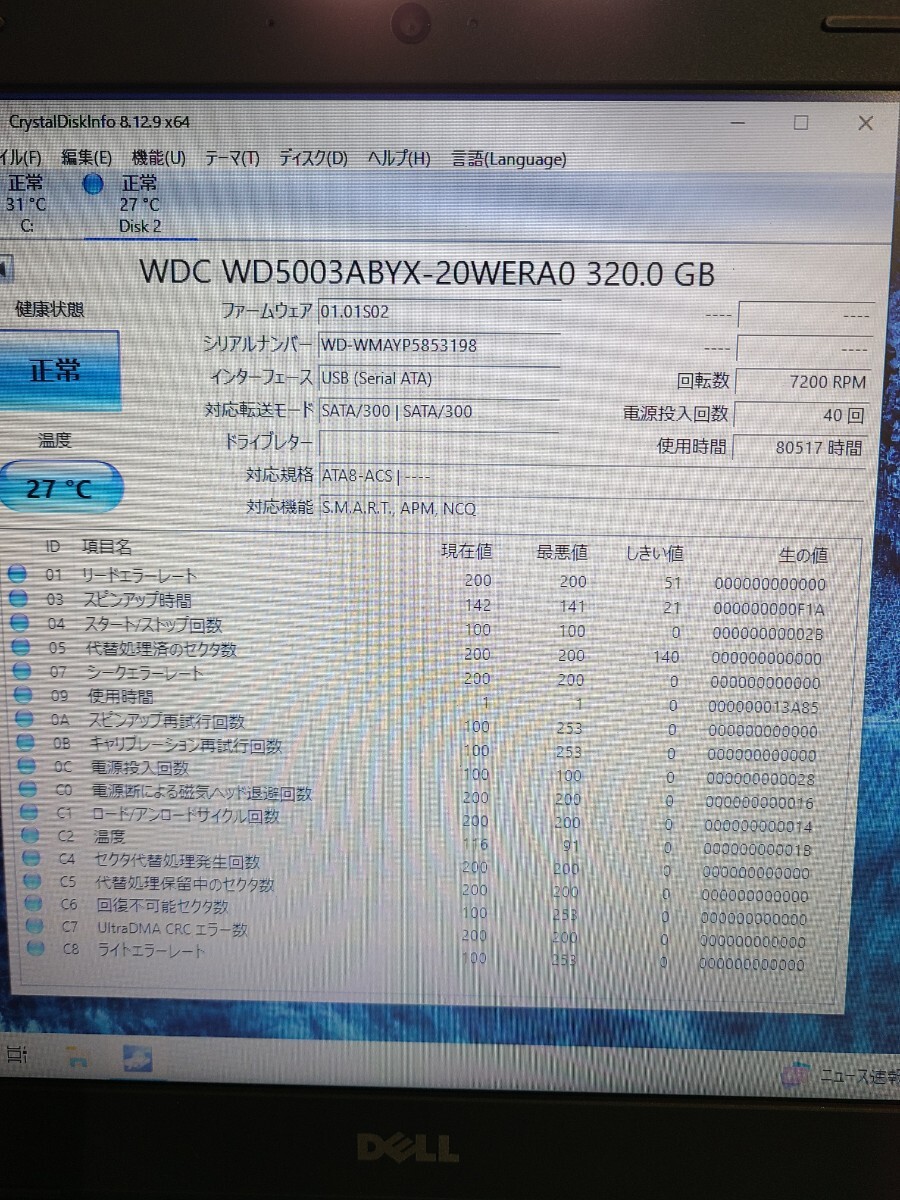 【中古品】管1G5 HDD 3.5インチ 320GB Western Digital 2個セット フォーマット済み 電源投入回数40回 使用時間80511時間