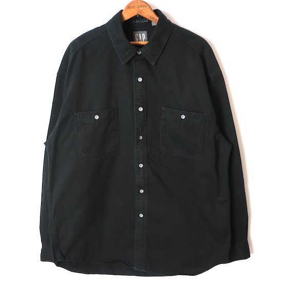 90s GAP 長袖 コットン シャツ(メンズ XL)ブラック オールド ヴィンテージ