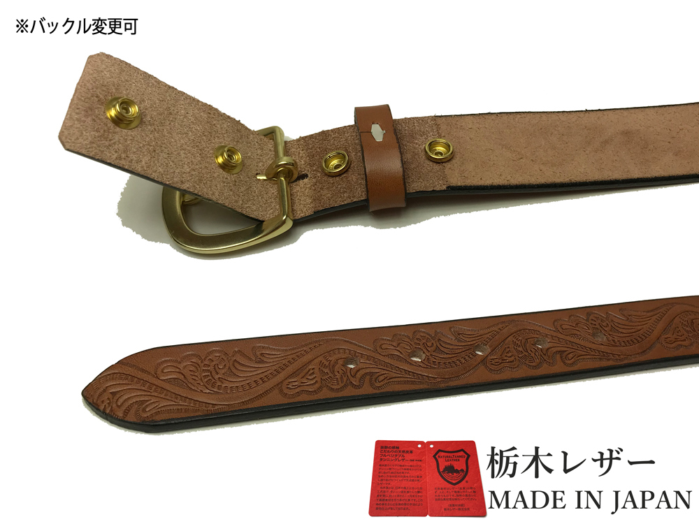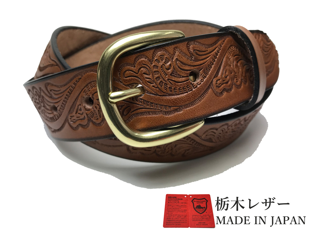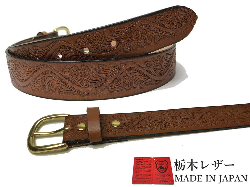 新品 栃木レザー ベルト 固定サイズ 本革 牛革 メンズ 茶 国産 クラフト カジュアル 35mm W034DBG 105